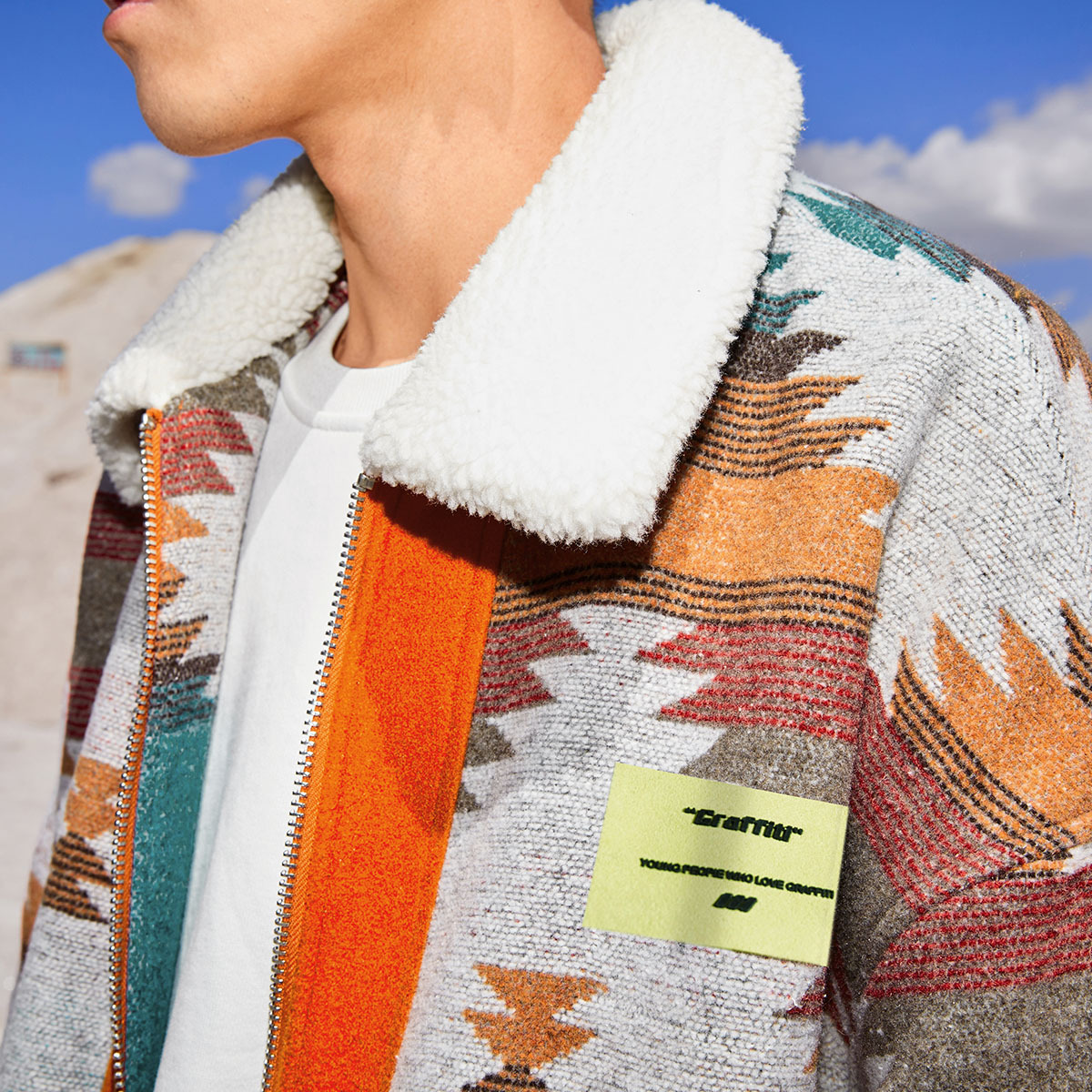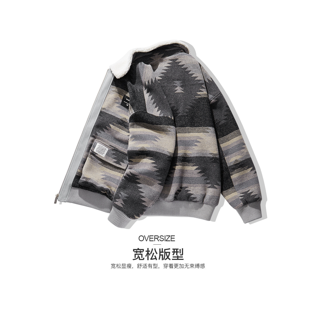 衣品天成冬装新款短款呢大衣个性花纹拼接撞色男羊羔毛翻领情侣装