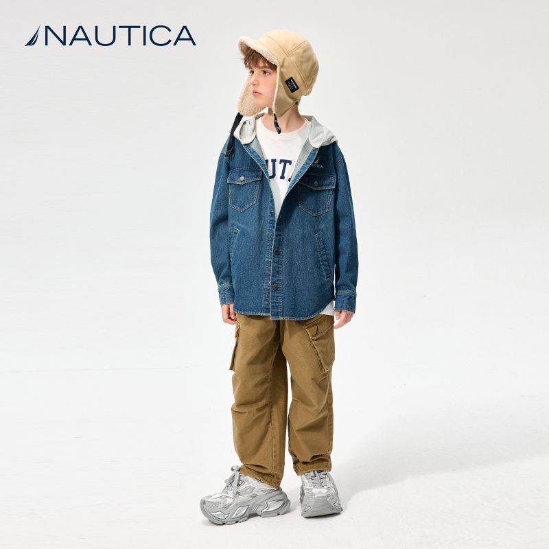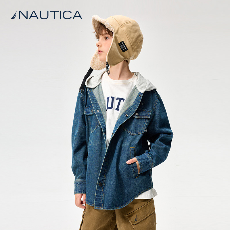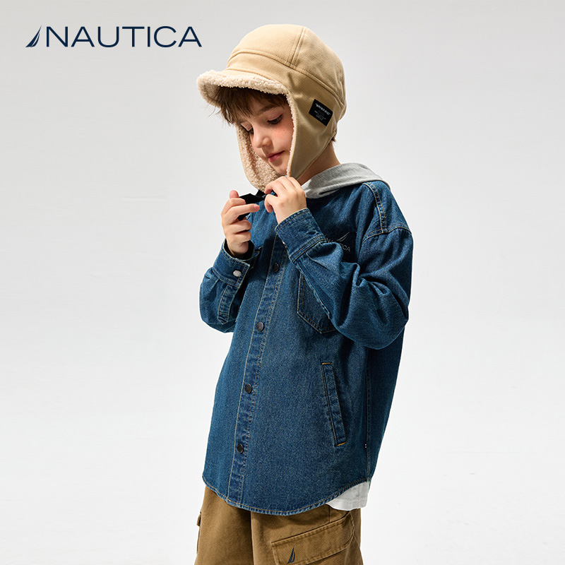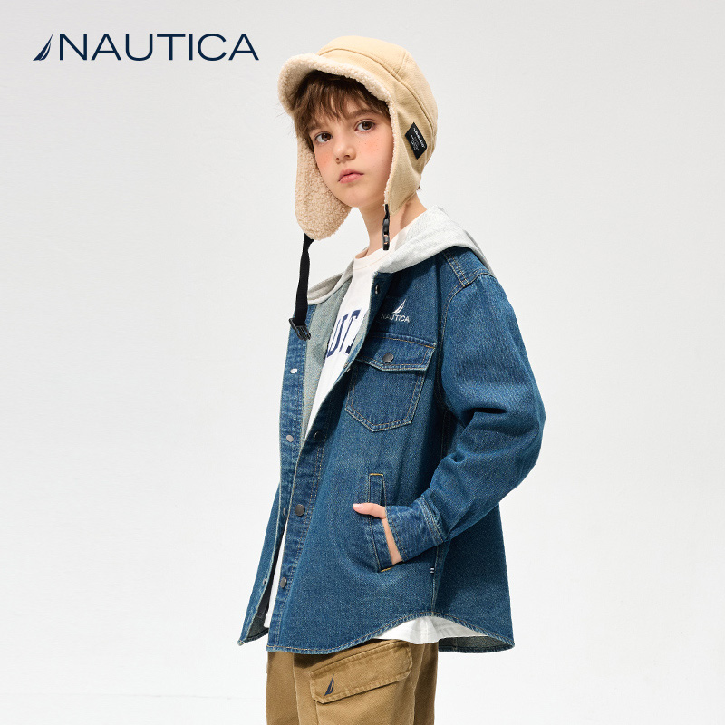 NAUTICA/诺帝卡童装男童女童夹克外套春秋季儿童牛仔连帽复古衬衫