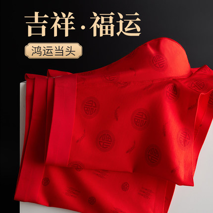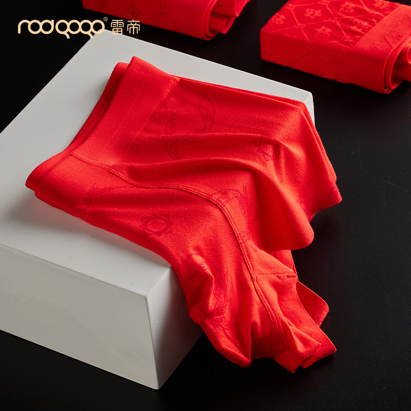 本命年红内裤男士莫代尔平角裤马年结婚四角内裤男生属马红色裤衩
