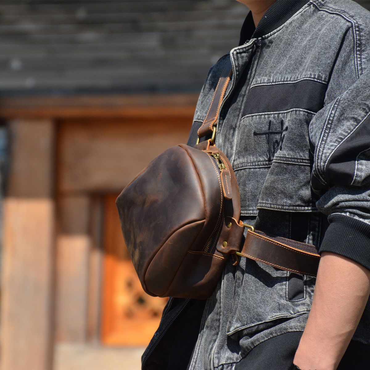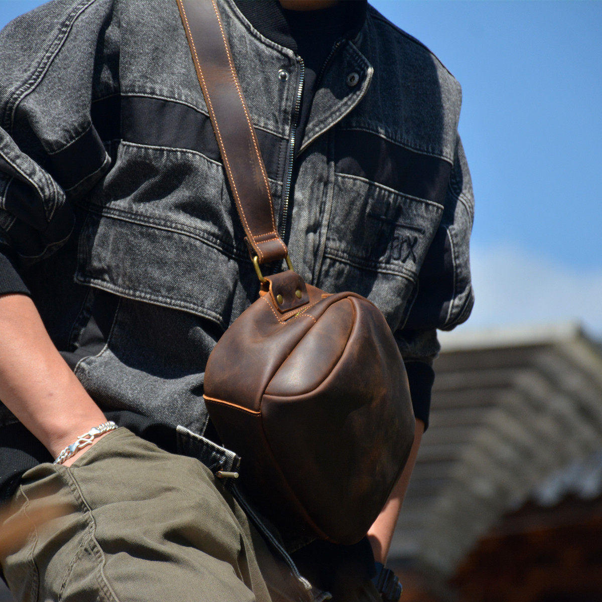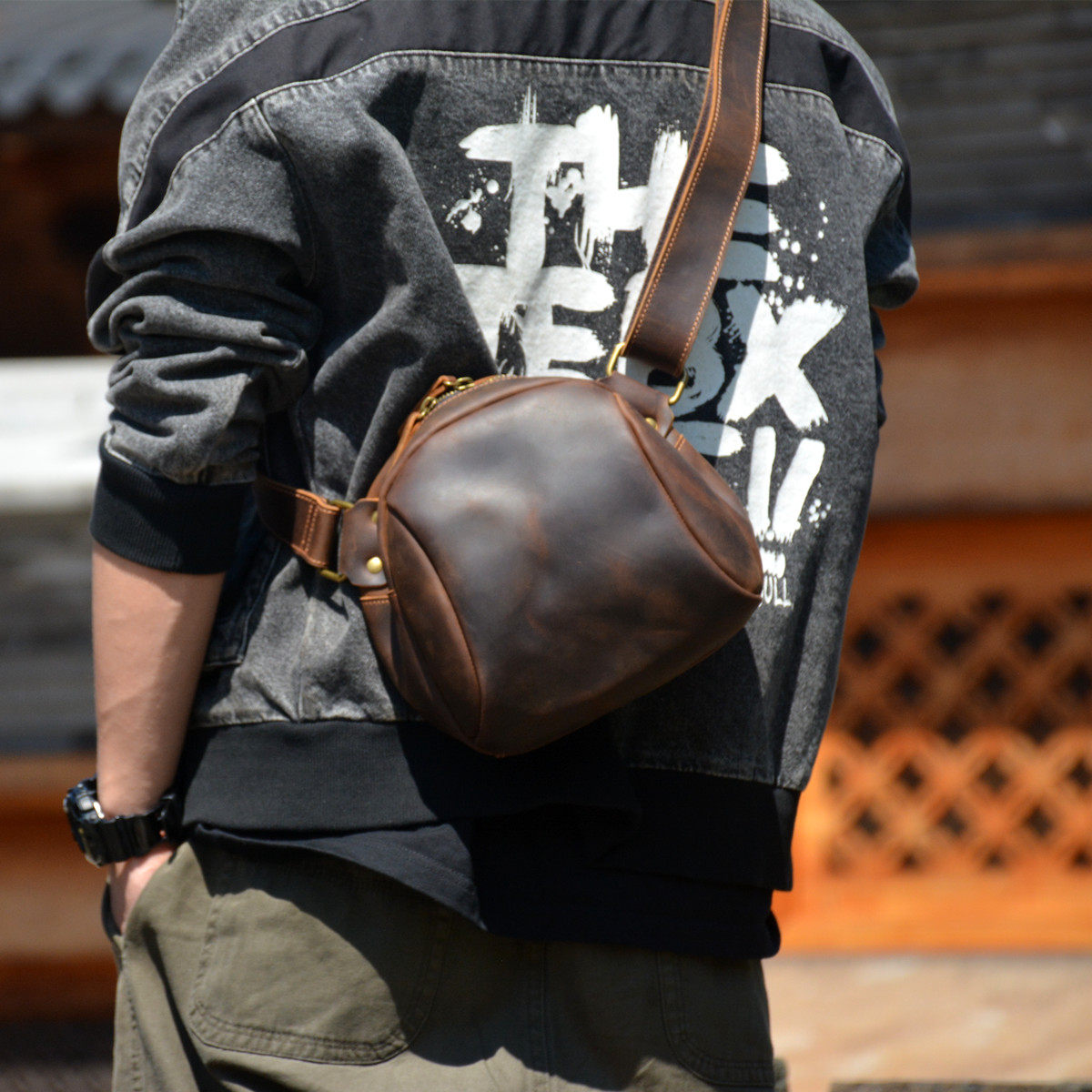 原创简约牛皮斜挎包男包复古疯马皮单肩包真皮时尚潮流小背包机车