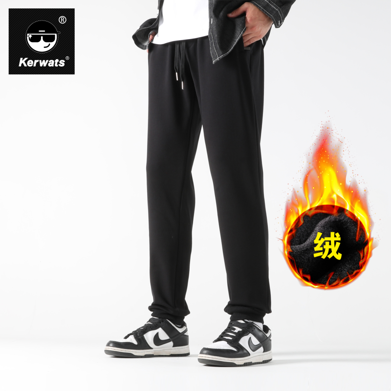 KERWATS可维斯品牌大码男女情侣无性别标章印花加绒美式束脚长裤