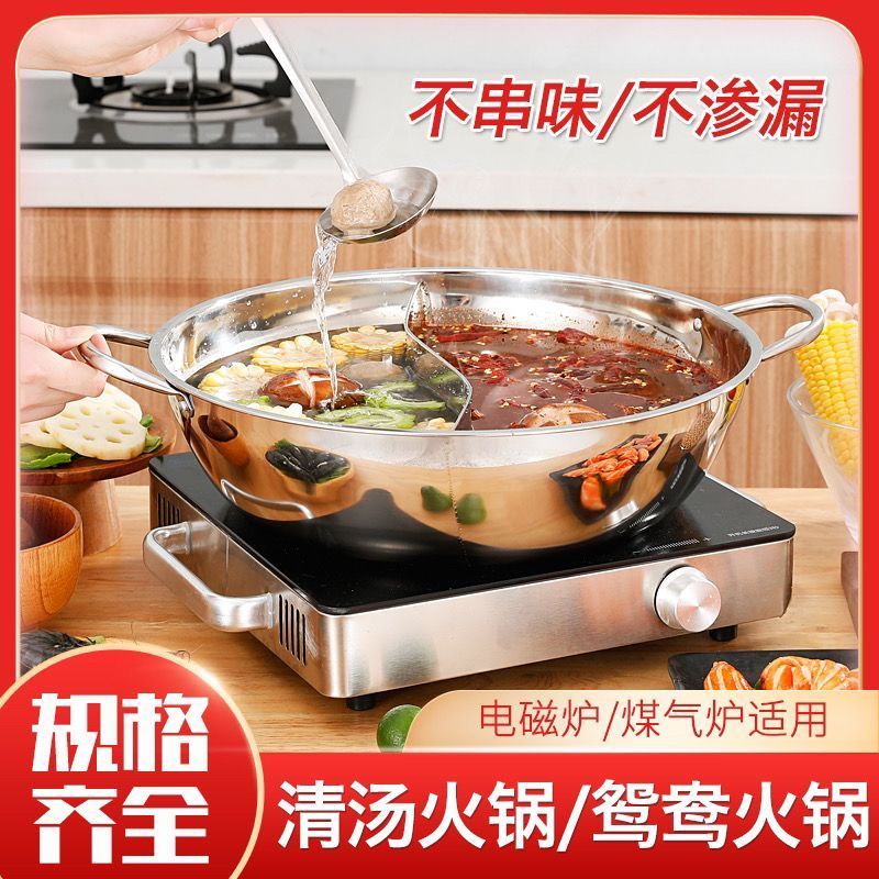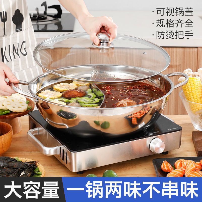 食品不锈钢鸳鸯锅火锅盆加厚电磁炉专用涮涮锅大容量厨房火锅汤锅