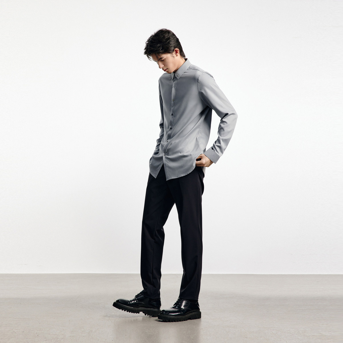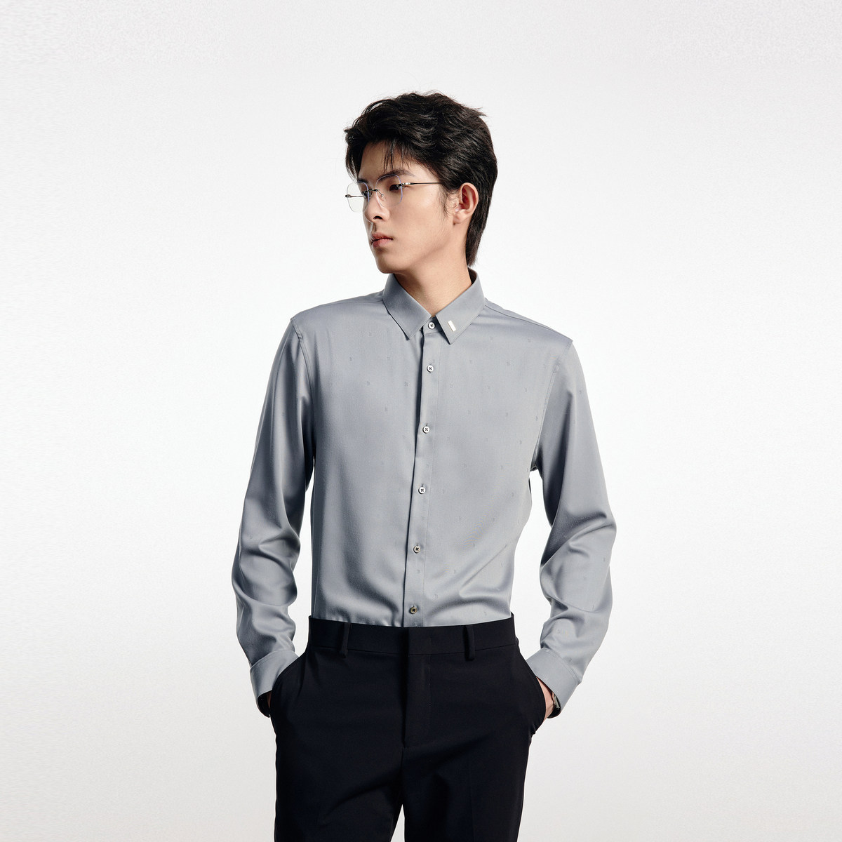 太平鸟男装 秋季新修身长袖衬衫男B1CAD3X04