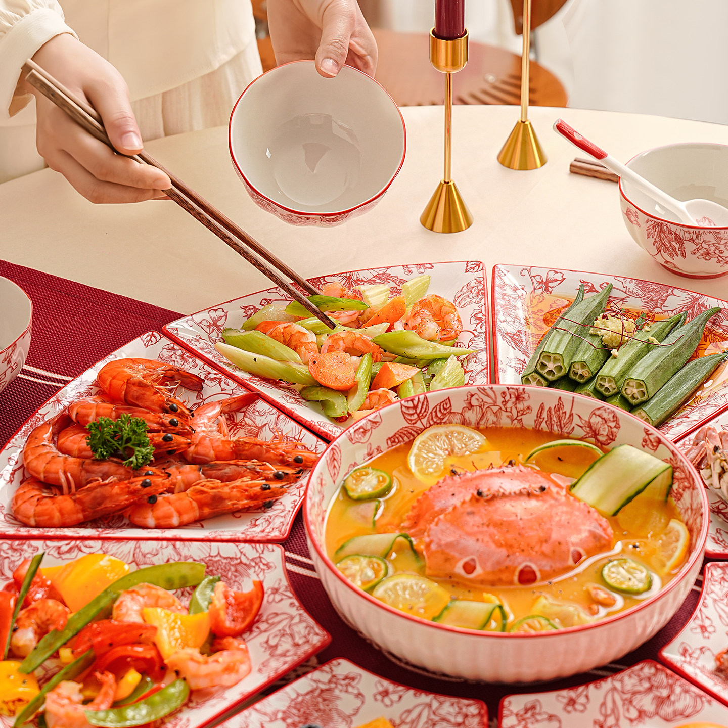 团圆年夜饭拼盘餐具组合过年家庭陶瓷器套装圆桌盘子碗2025新款