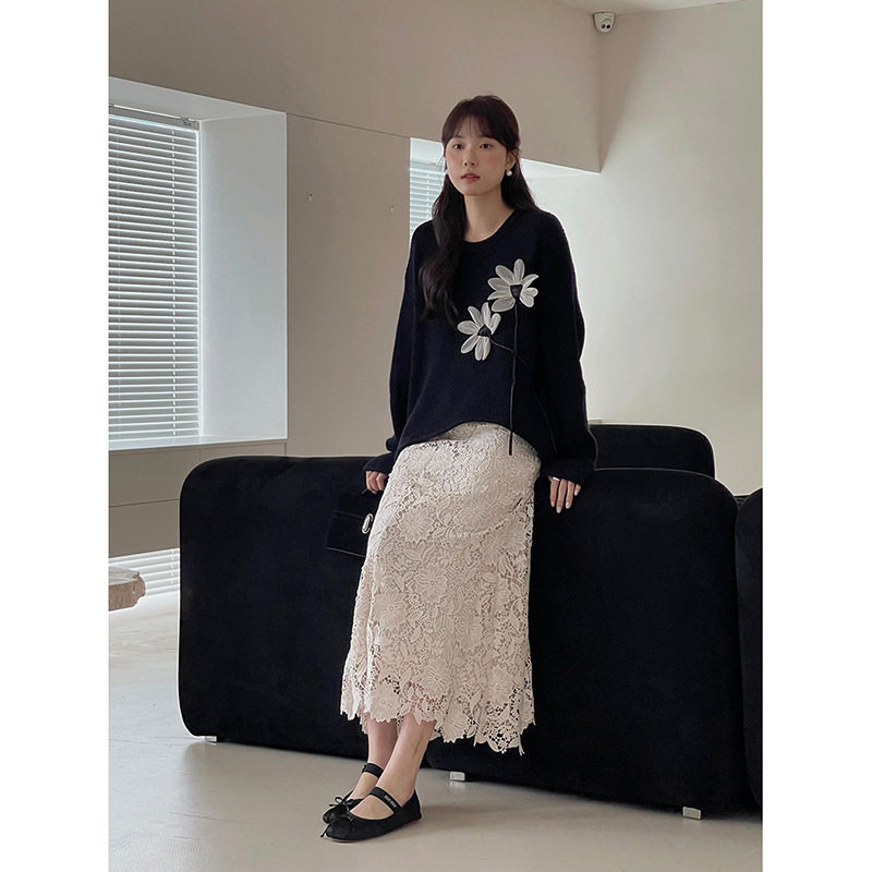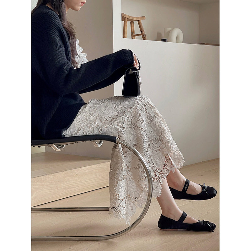 法式复古蕾丝A字半身裙女春夏