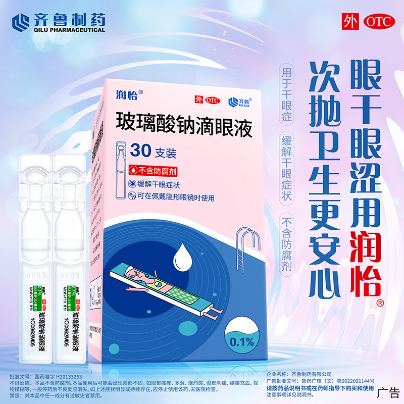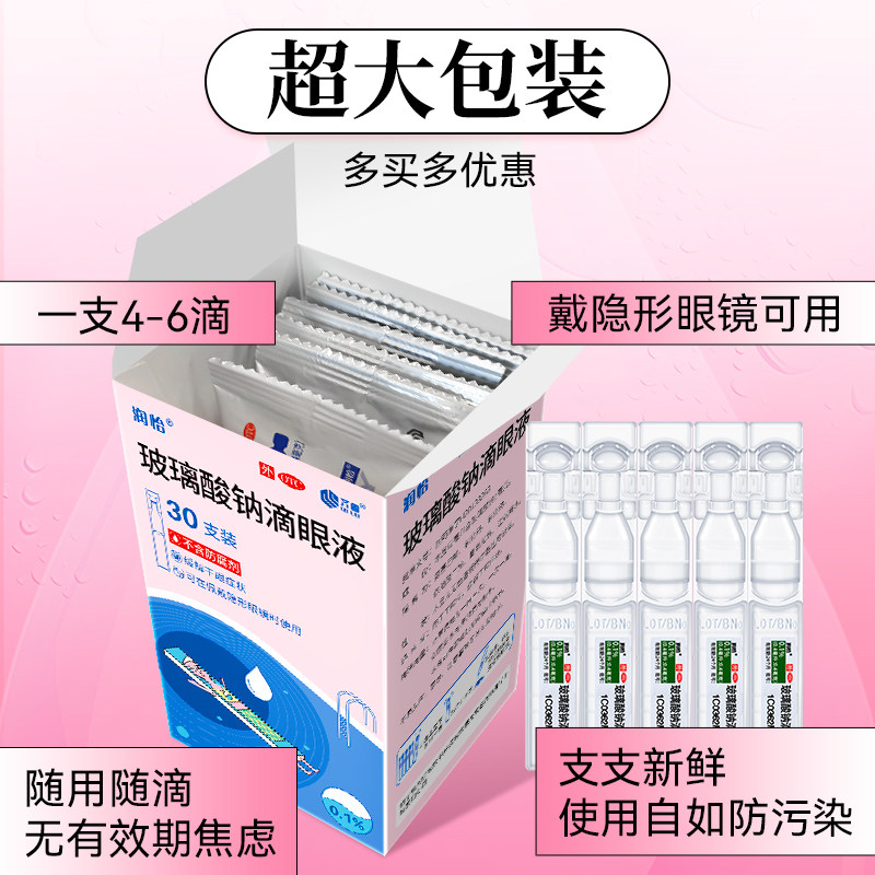 润怡 玻璃酸钠滴眼液30支 人工泪液眼药水干眼症视疲劳眼睛干涩