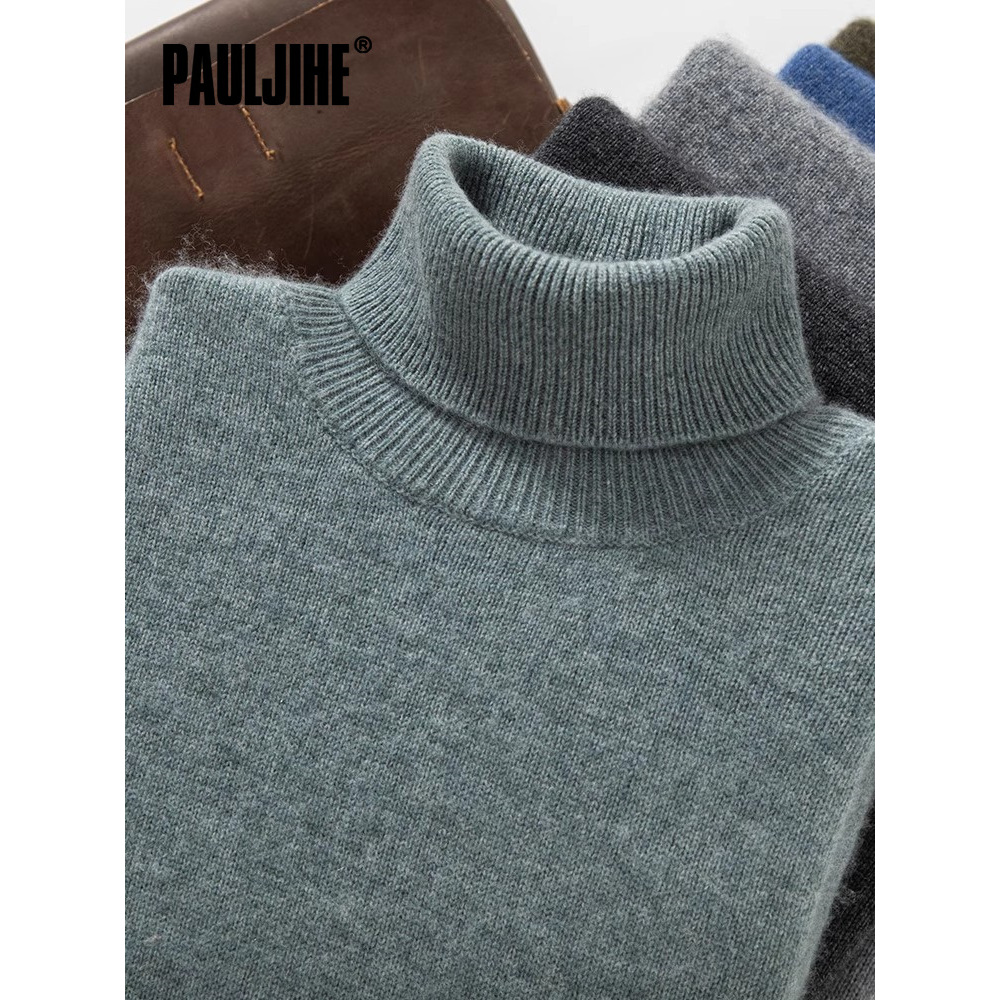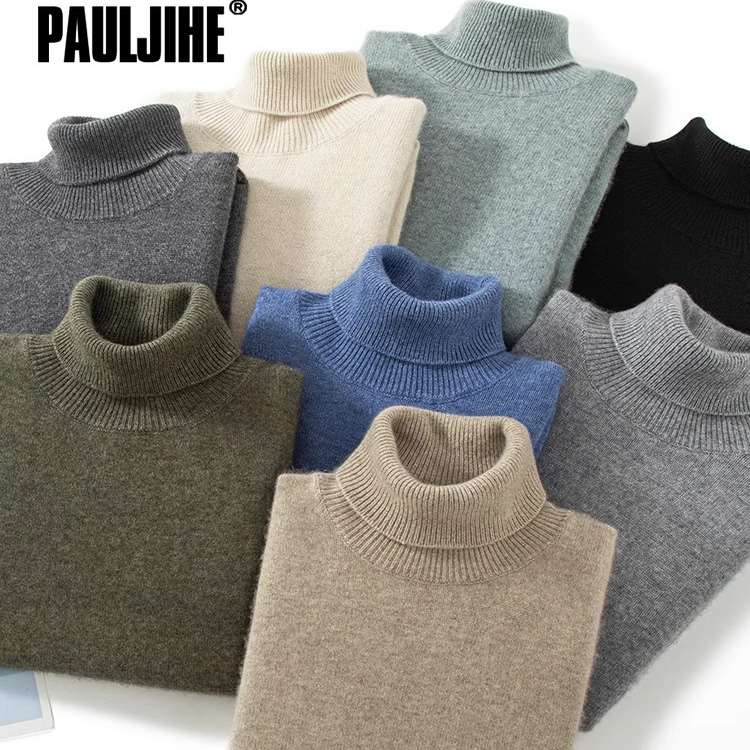 保罗几何羊毛衫男2025秋冬季新款轻奢男士纯色翻领羊绒针织打底衫
