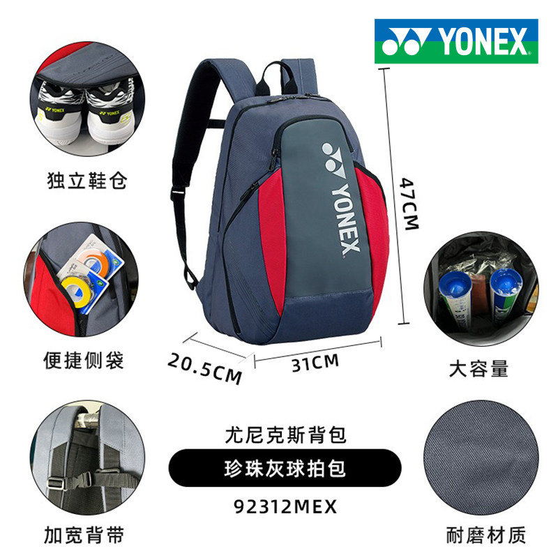 尤尼克斯灰珍珠配色双肩球拍包
