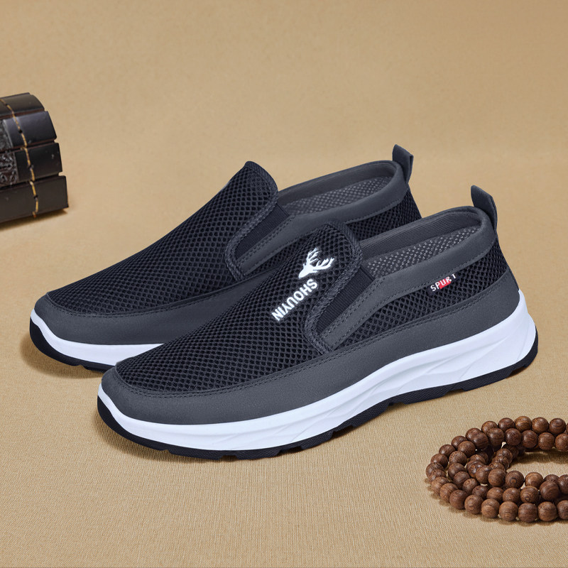 老北京布鞋男新款夏季正品一脚蹬网鞋爷爷软底工作防滑休闲爸爸鞋