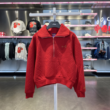李宁2024春季新款卫衣女子日进斗金运动休闲宽松套头衫AWDU048