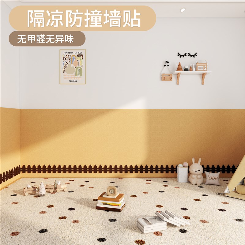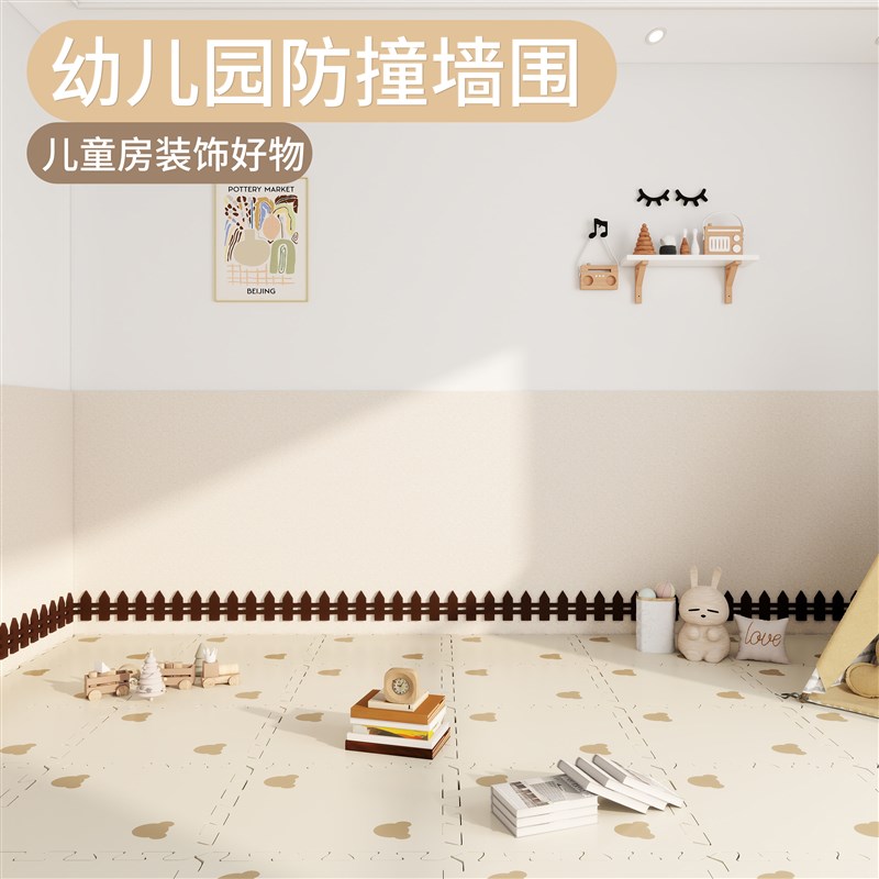 儿童房背景墙装饰墙围免打孔不伤墙防撞护墙板童趣栅栏毛毡板墙贴