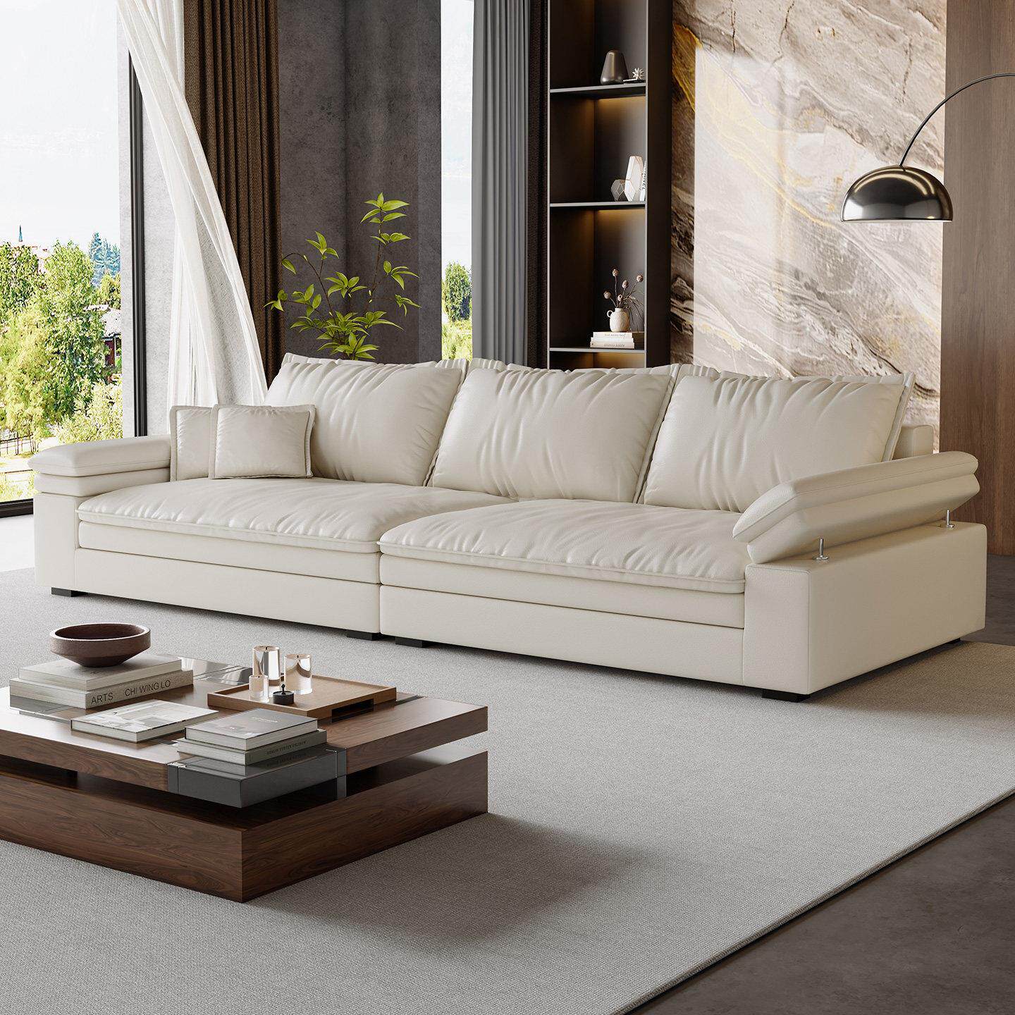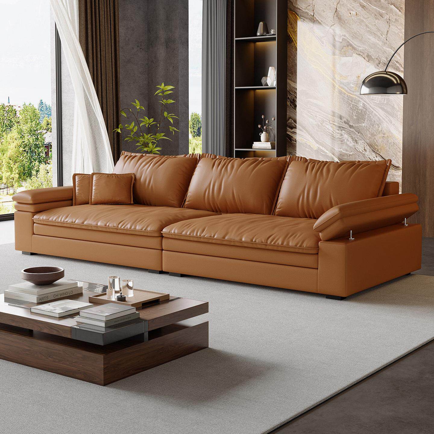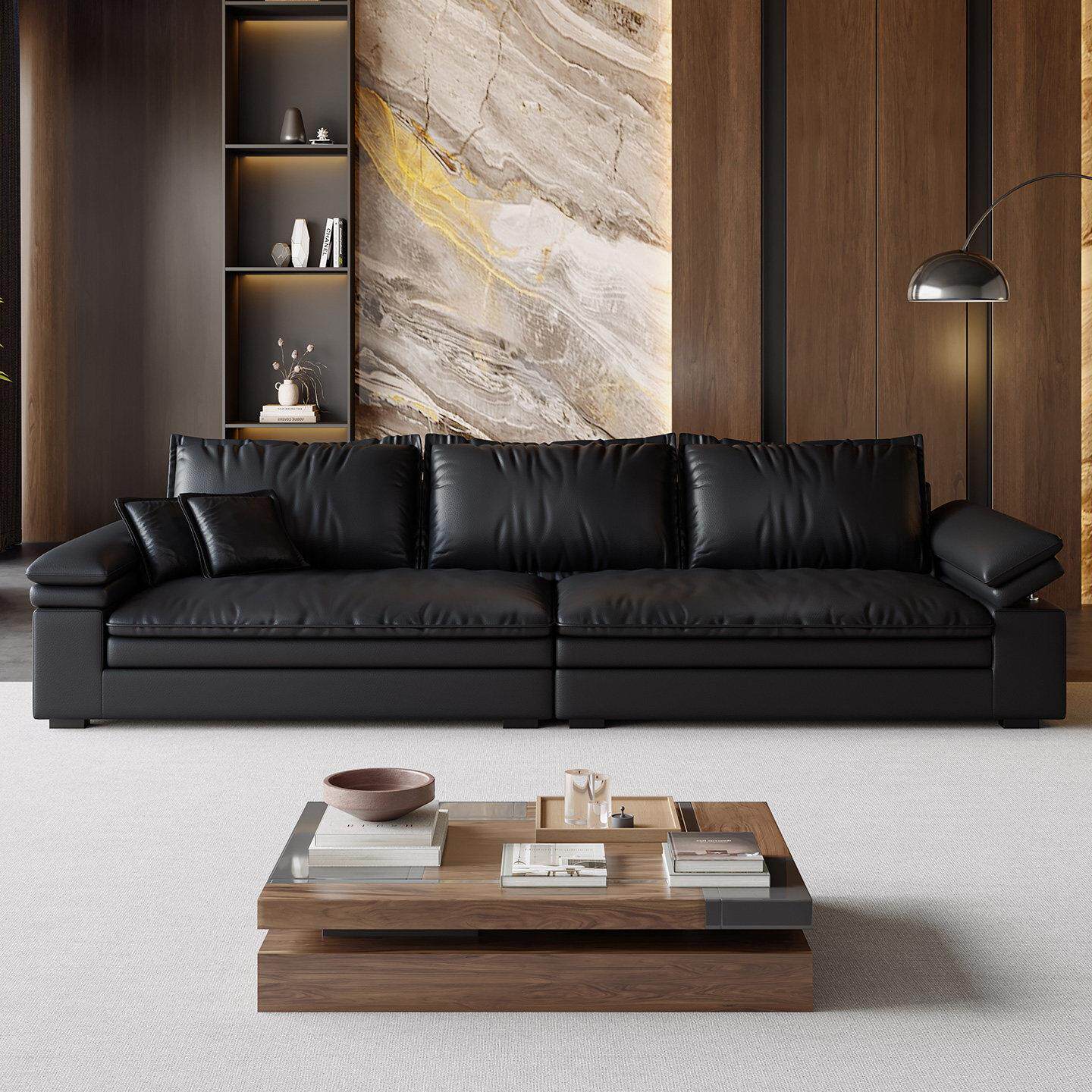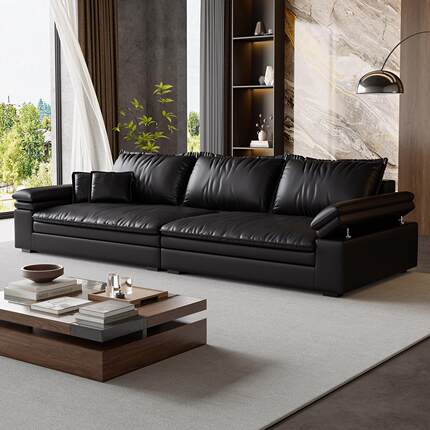 政府补贴意式极简真皮帆船沙发超宽大坐深扶手可调节客厅皮艺沙发