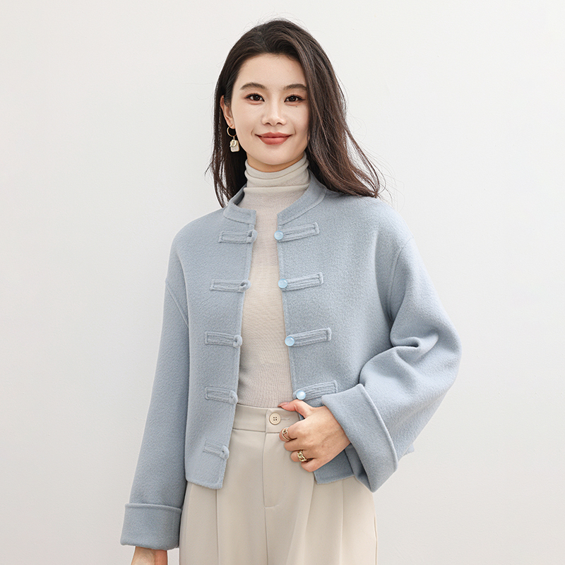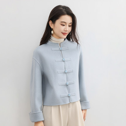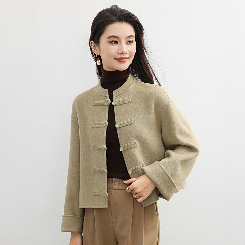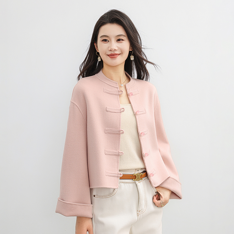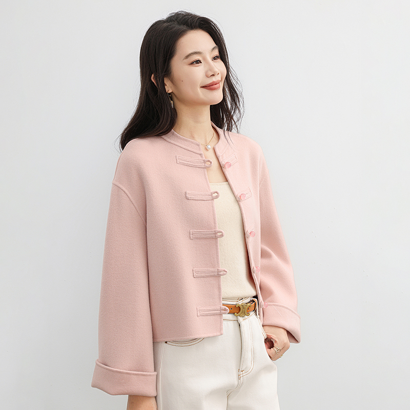 京绒羊2025秋冬立领100%羊毛双面呢大衣女士宽松显瘦气质毛呢外套