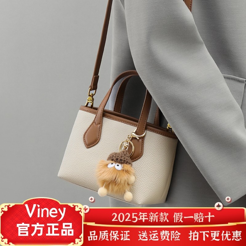 Viney牛皮单肩包时尚包包休闲水桶包手提包休闲通勤生日礼物