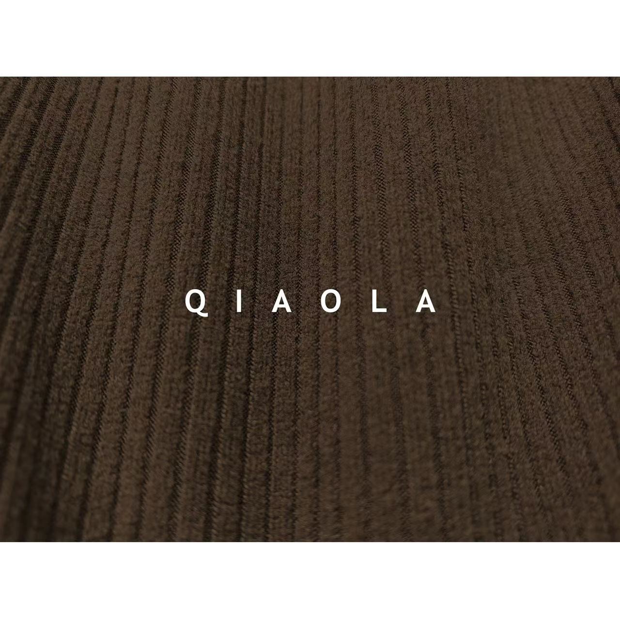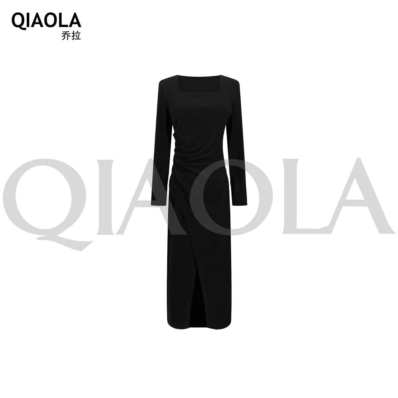乔拉【朗姆酒】法式气质方领针织连衣裙女秋冬不规则开叉内搭长裙