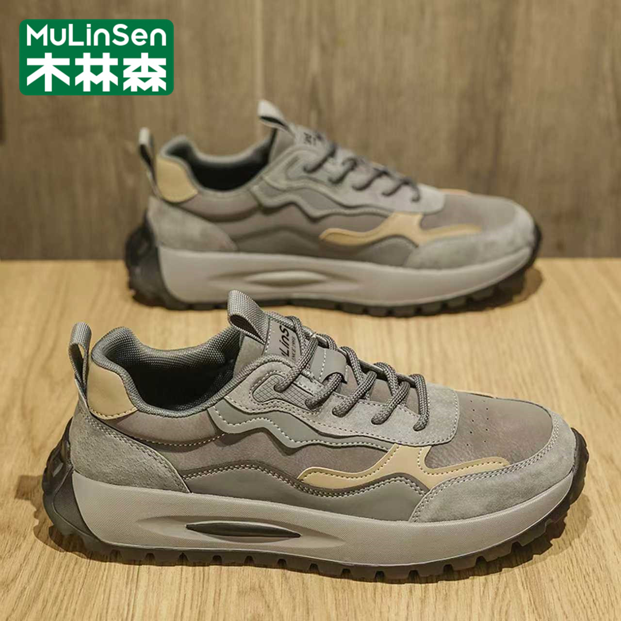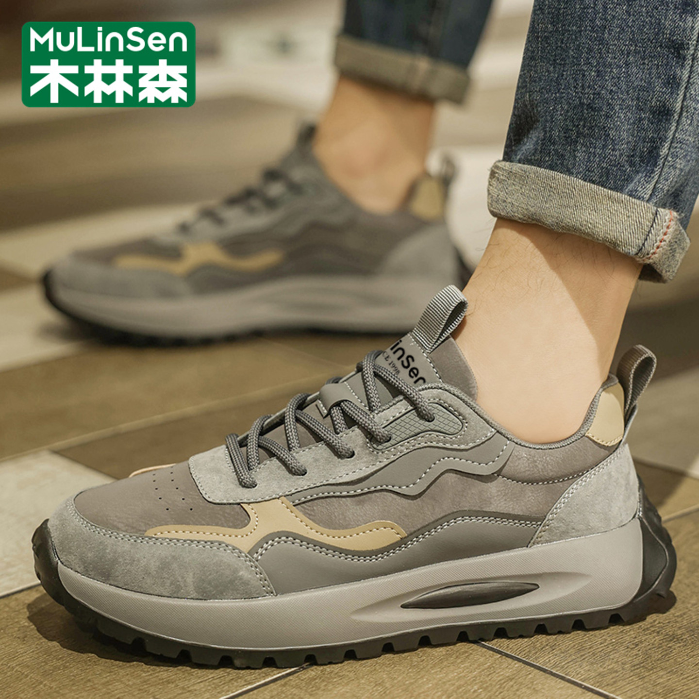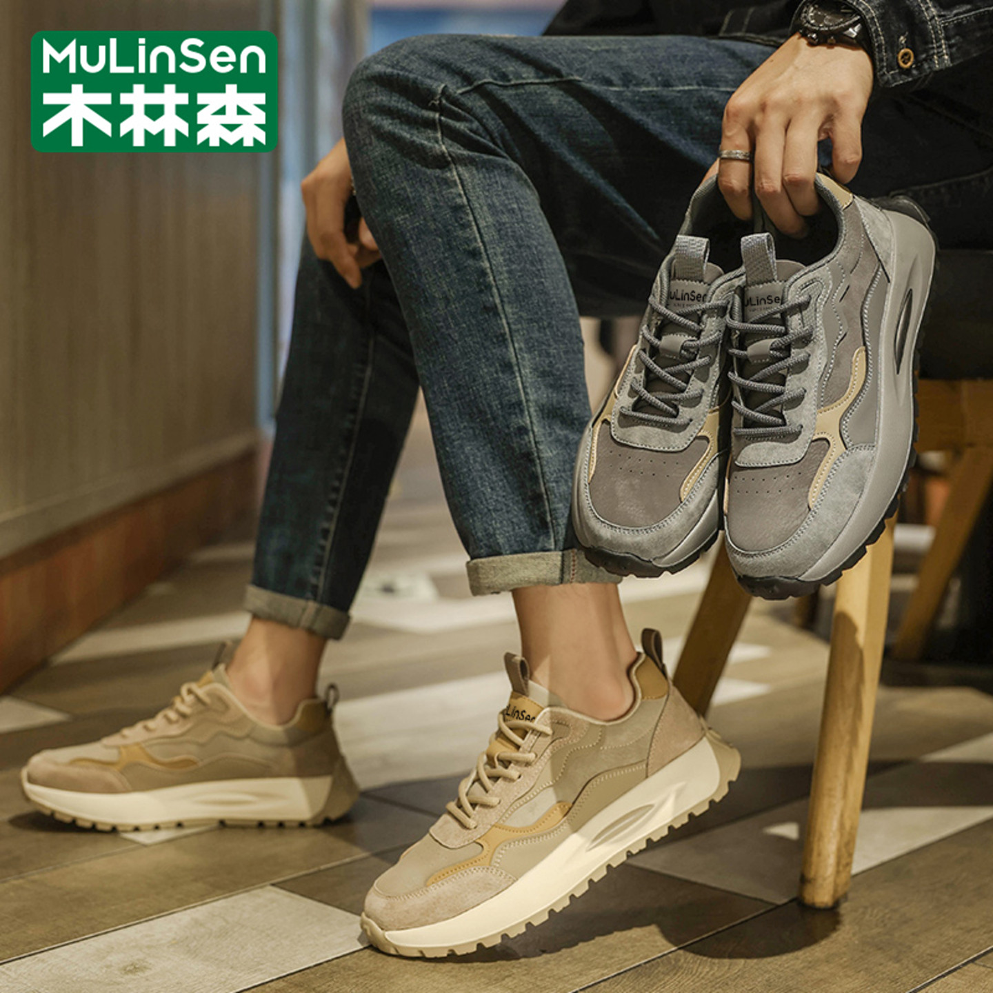 木林森男鞋2025新款冬季潮流休闲运动百搭软底跑步皮面老爹阿甘鞋