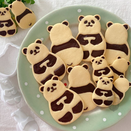 创意熊猫饼干模3D打印正面背面多造型设计家用烘焙工具饼皮手压模