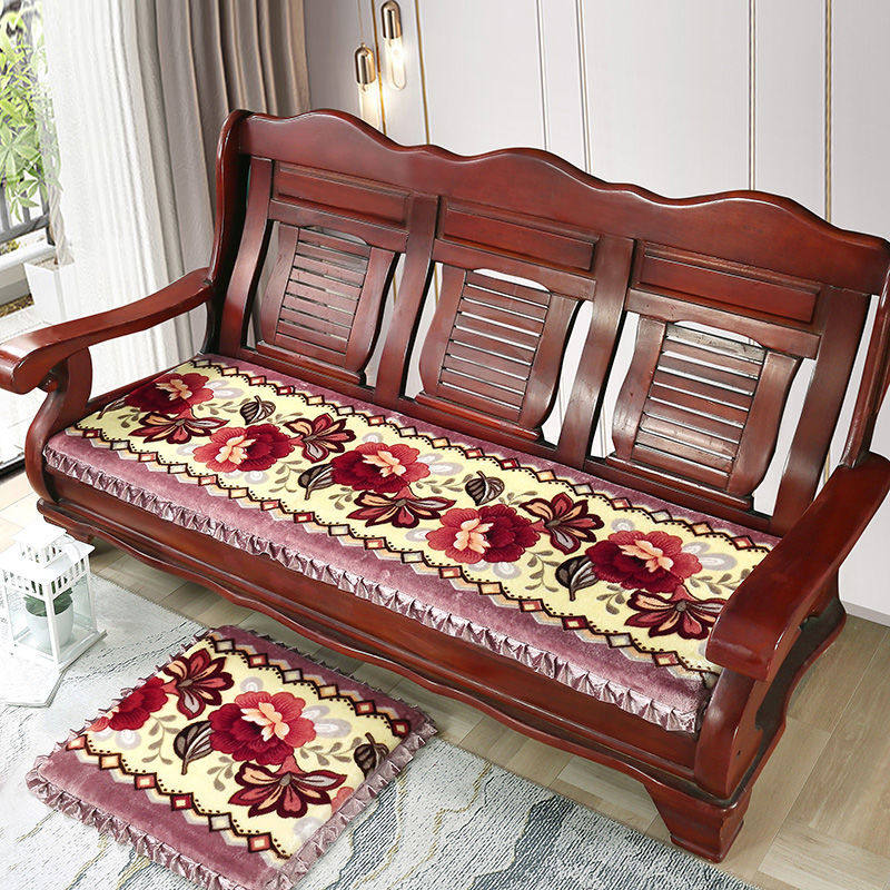 防滑可拆洗中式秋冬季毛绒实木沙发棉垫布加厚长椅垫子连体椅垫