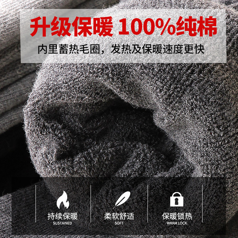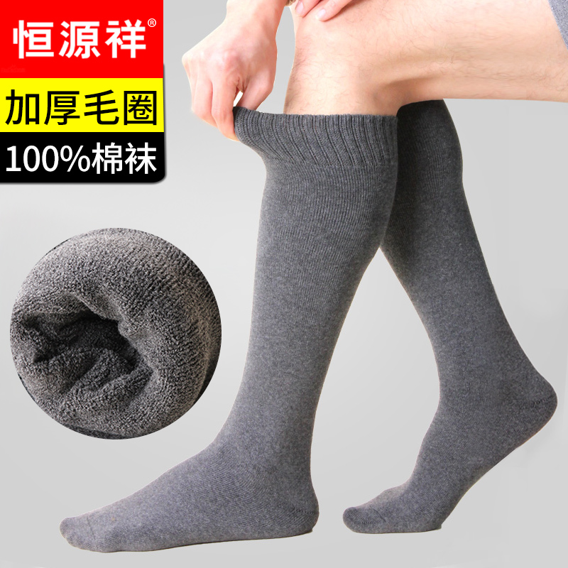 恒源祥纯棉长袜子男士中筒小腿袜加绒加厚保暖秋冬季高筒长筒商务