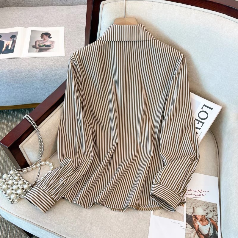 时尚洋气减龄浅咖色假两件衬衫休闲百搭简约衬衣秋冬打底长袖上衣