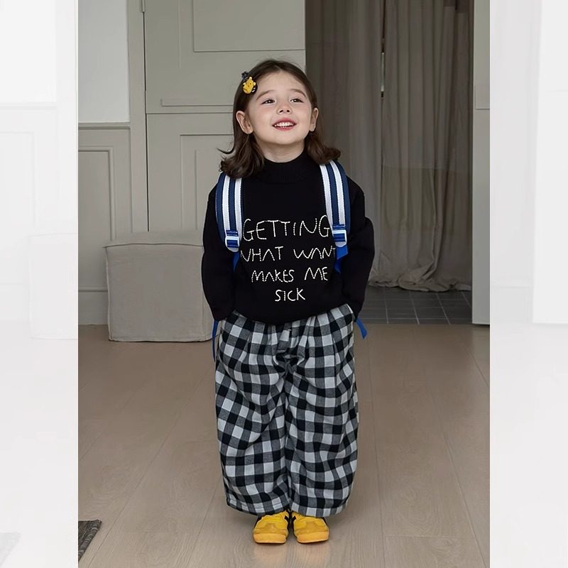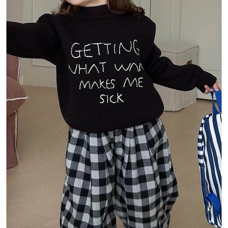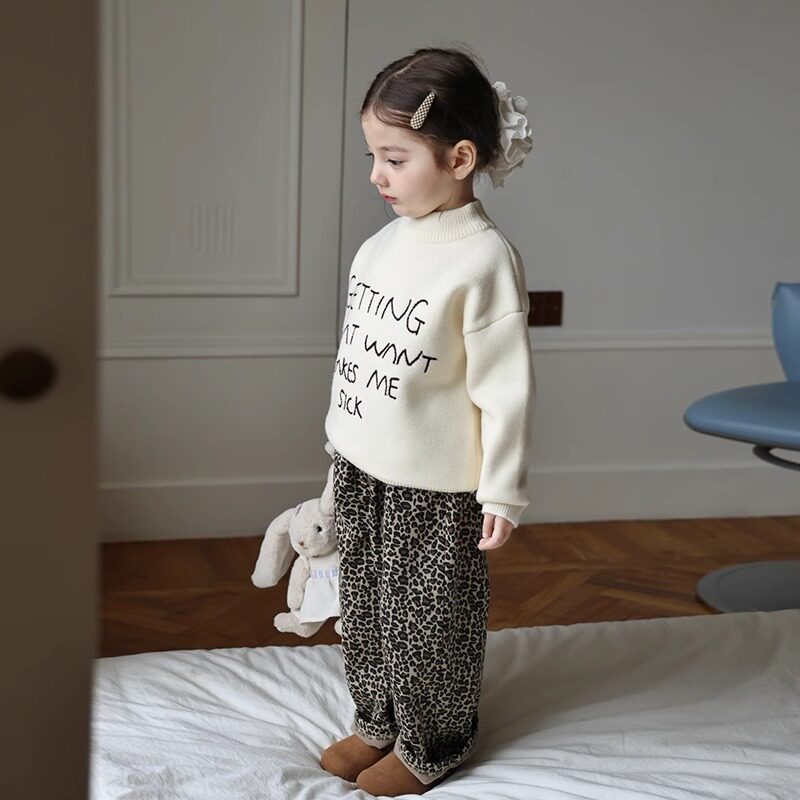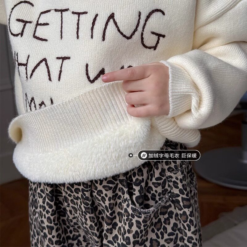女童韩版时尚字母毛衣冬装新款宝宝一体绒休闲圆领加厚针织衫上衣