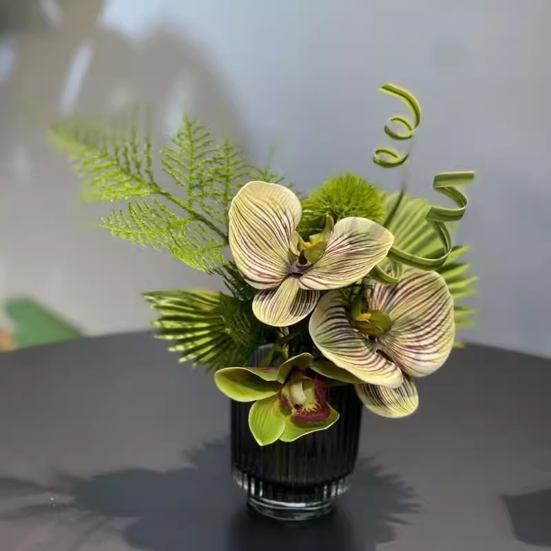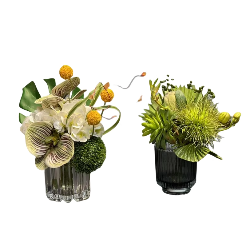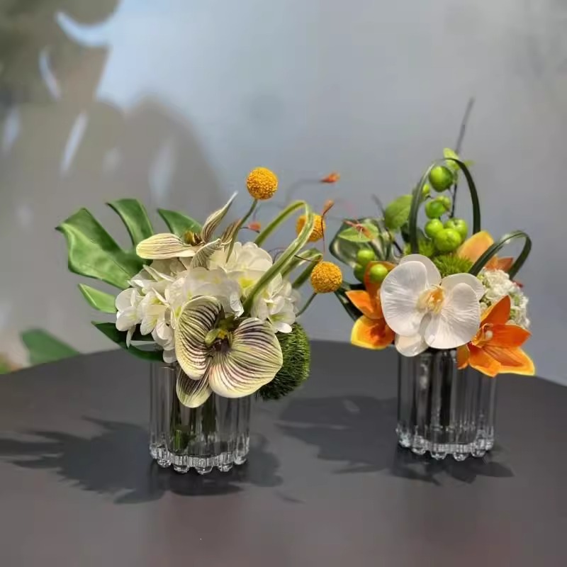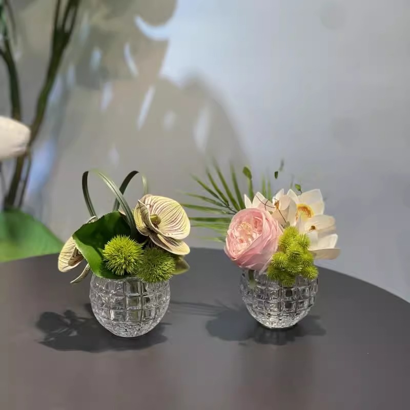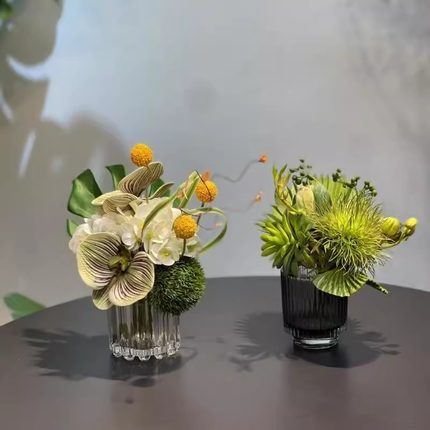 现代简约仿真花艺绿植玻璃插花器客厅餐桌售楼处洽谈桌面软装摆件