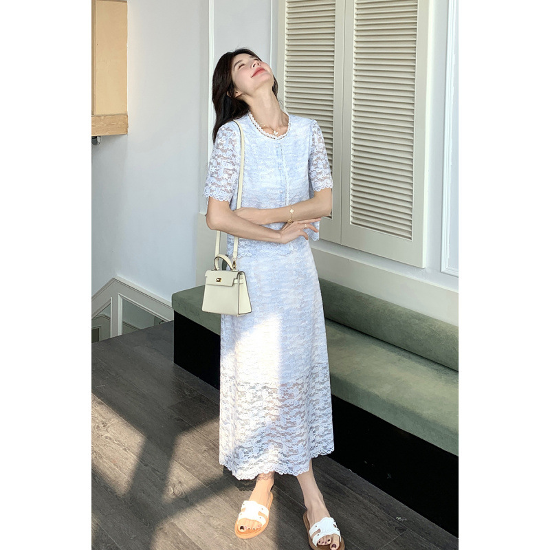 罗芬 故事面料女装官方实拍小香风蕾丝套装裙夏季2025新款高级温