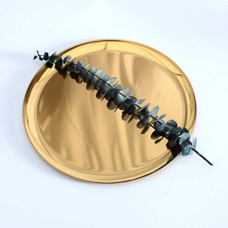 北欧H*Y款黄铜金色圆形金属大托盘 置物收纳盘家居水果盘茶盘摆件