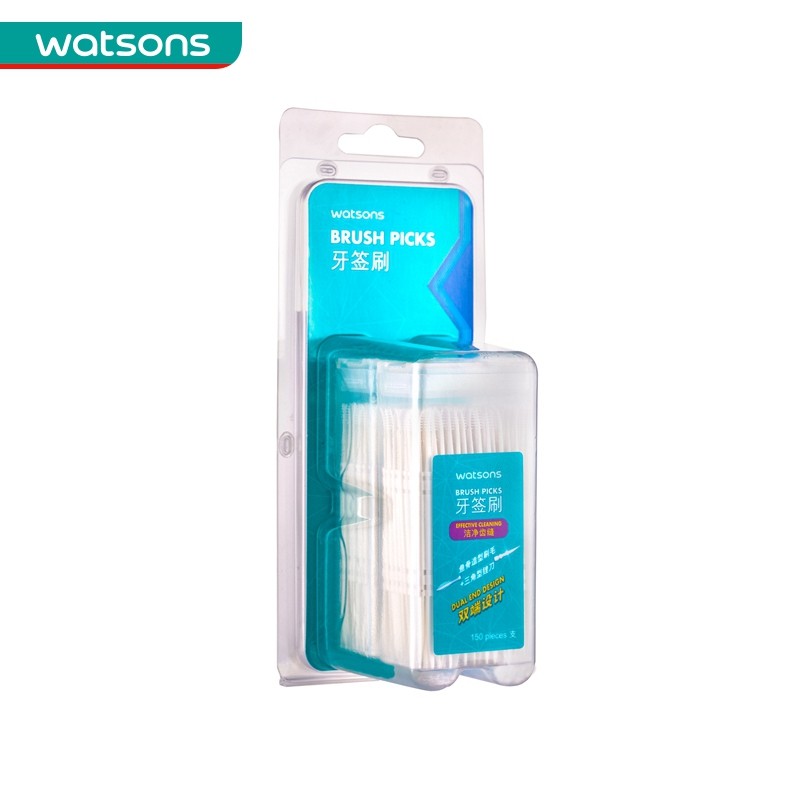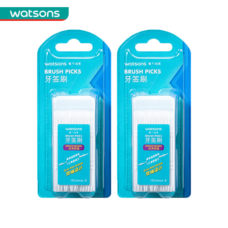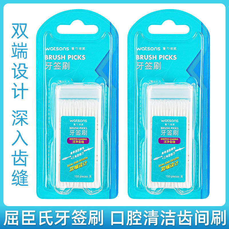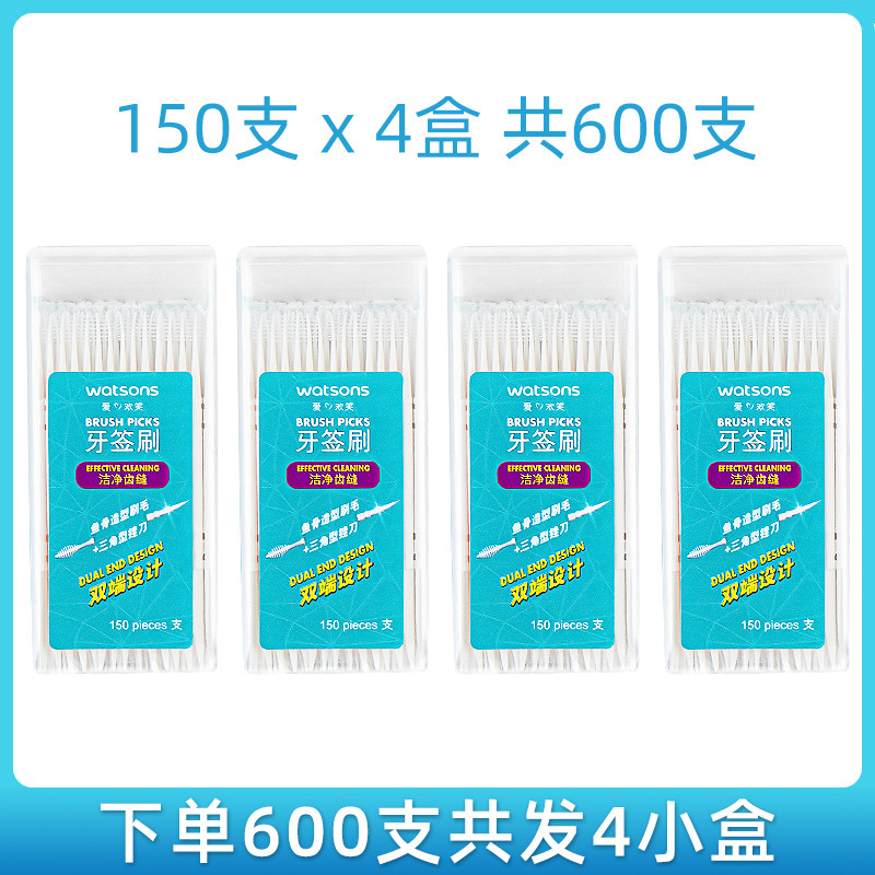 屈臣氏正品牙签刷牙线棒150支*4盒共600支双头鱼骨叶形塑料牙缝刷