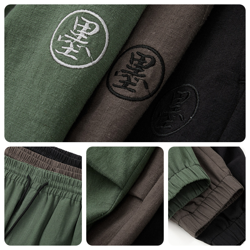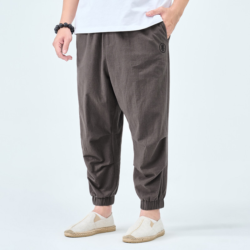 半墨夏季亚麻裤男薄款透气休闲裤2025夏季新款束脚裤胖子大码男裤