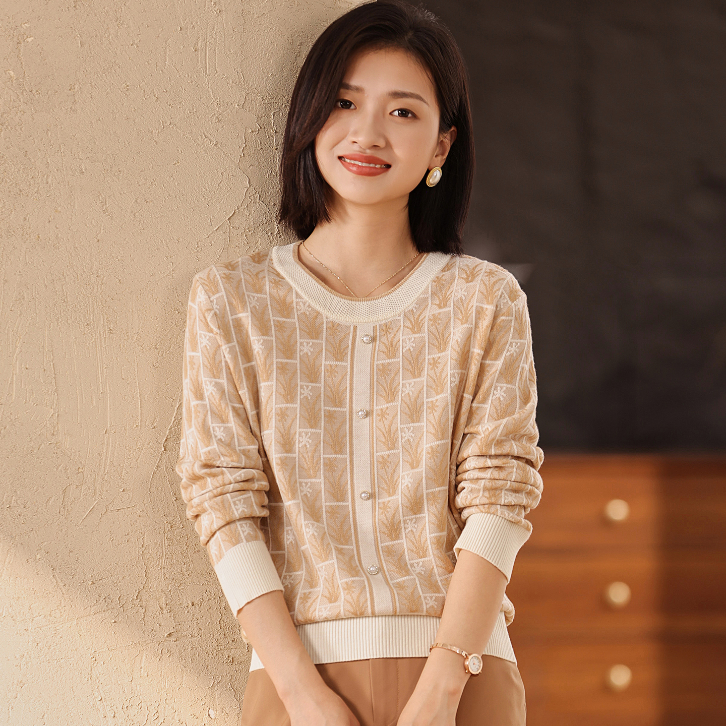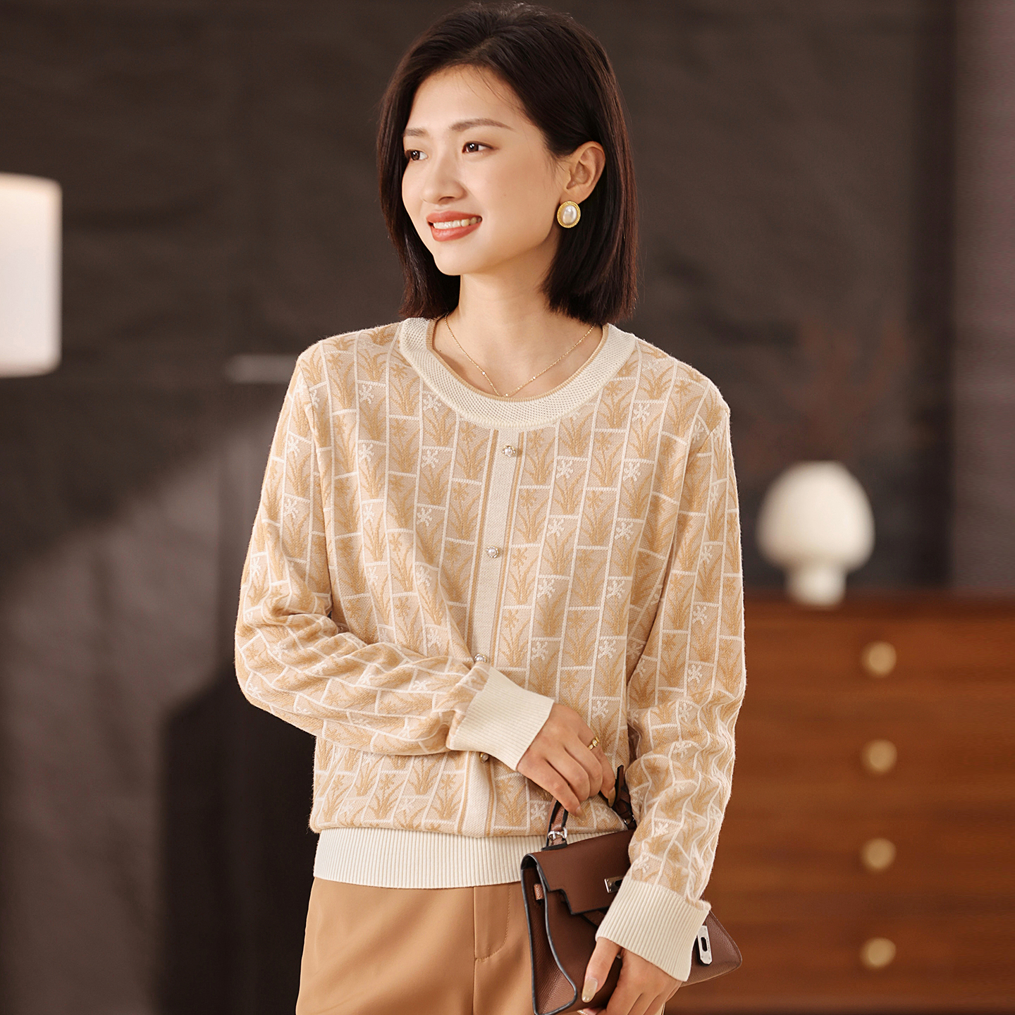 喜卉洋气妈妈秋装提花针织打底衫新款内搭中老年女装春秋长袖上衣