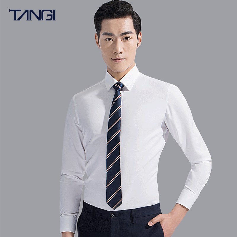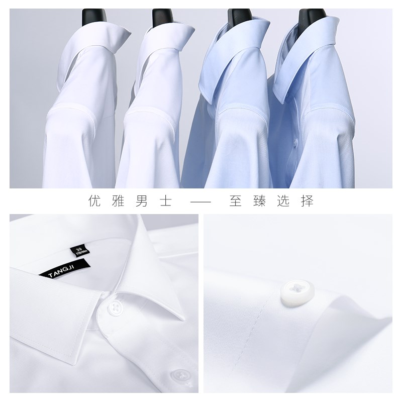 白衬衣男长袖商务正装修身免烫职业上班男士西装衬衫春季寸衫