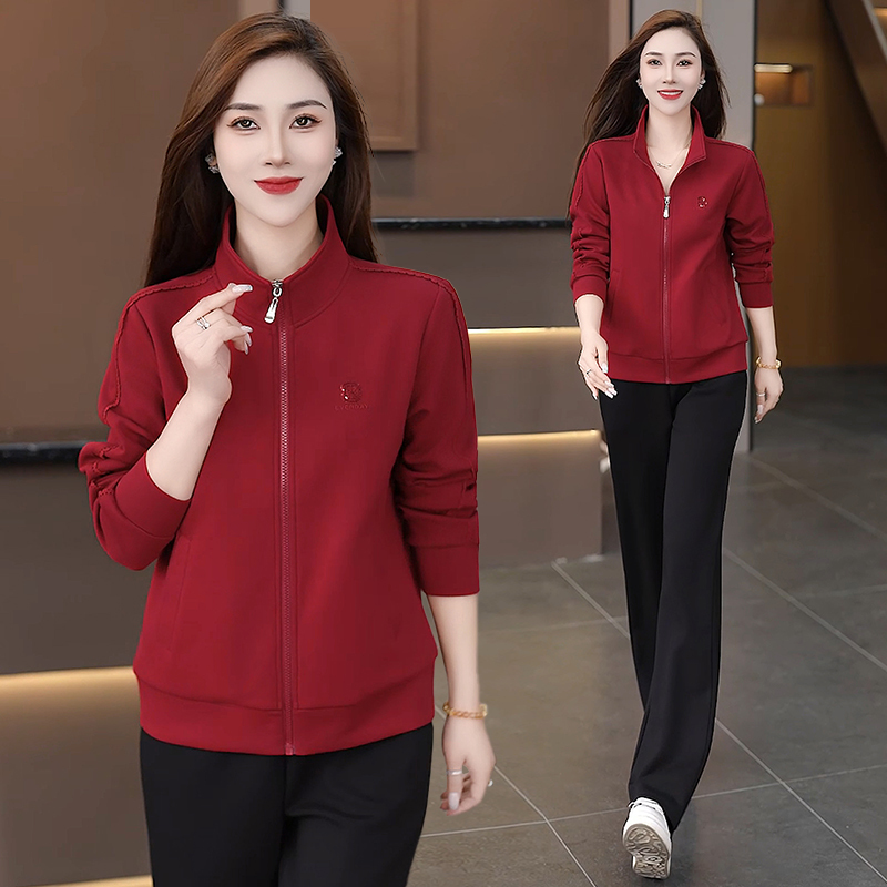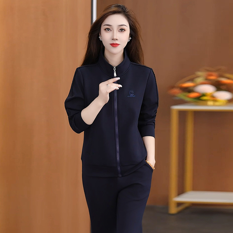 妈妈秋装上衣2025新款中老年人绣花卫衣运动服套装女春秋季两件套