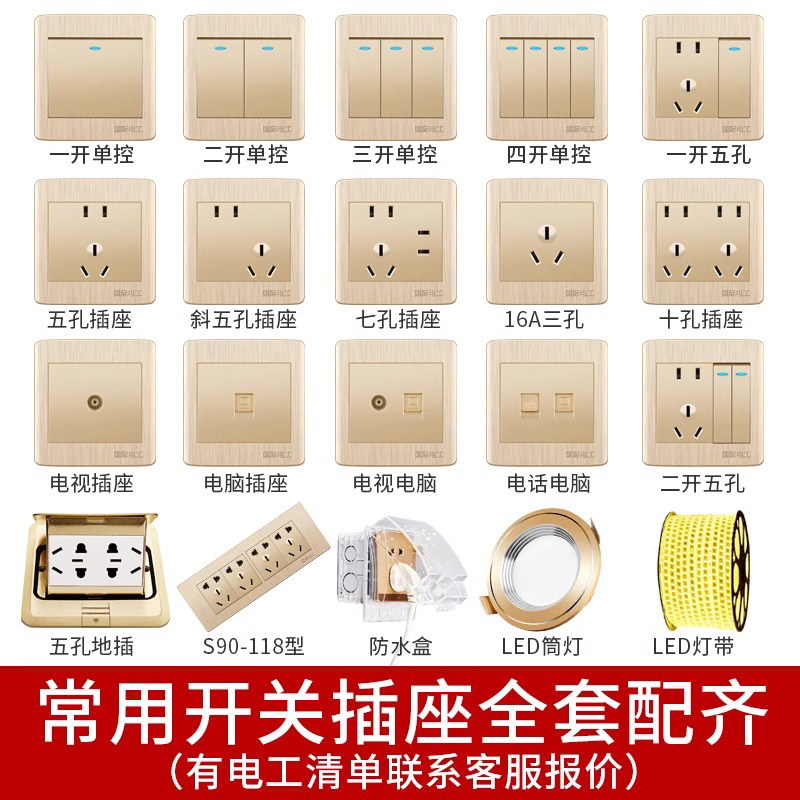 国际电工86型一开5五孔USB开关插座面板双控16a空调暗装墙壁家用