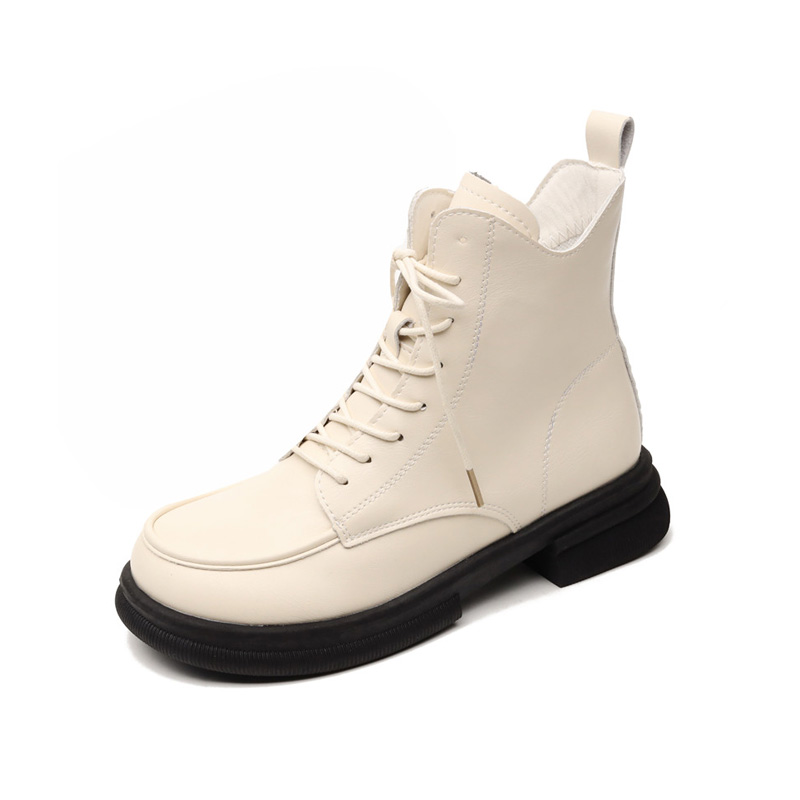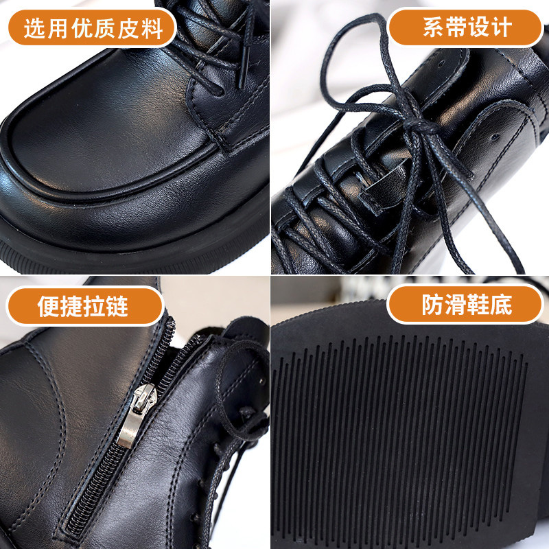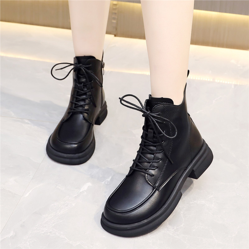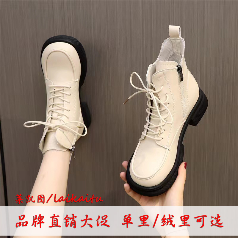 马丁靴女英伦风短筒系带2023新款春秋单靴冬季加绒中跟厚底短靴子