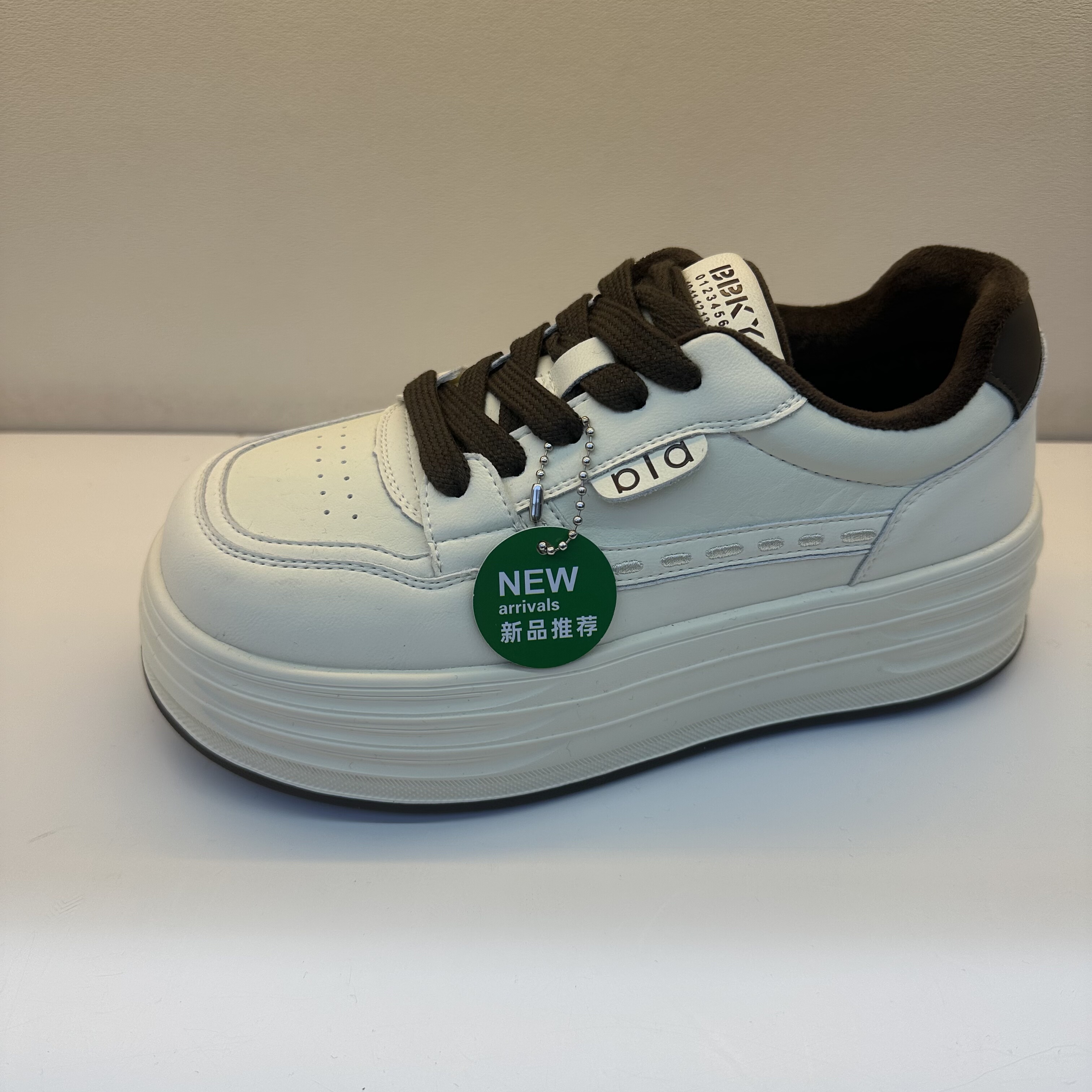 茵茵家欧洲站真皮加绒厚底小白鞋女2025秋冬新款时尚轻便软底板鞋