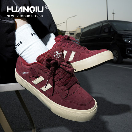 环球酒红板鞋男款春季新款复古内增高鞋子男鞋潮流百搭高街面包鞋