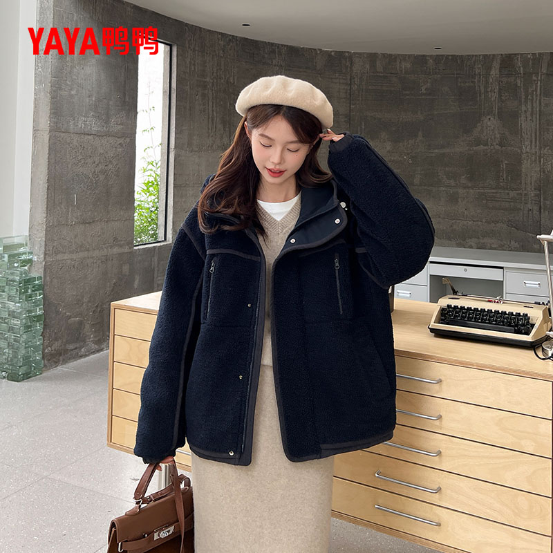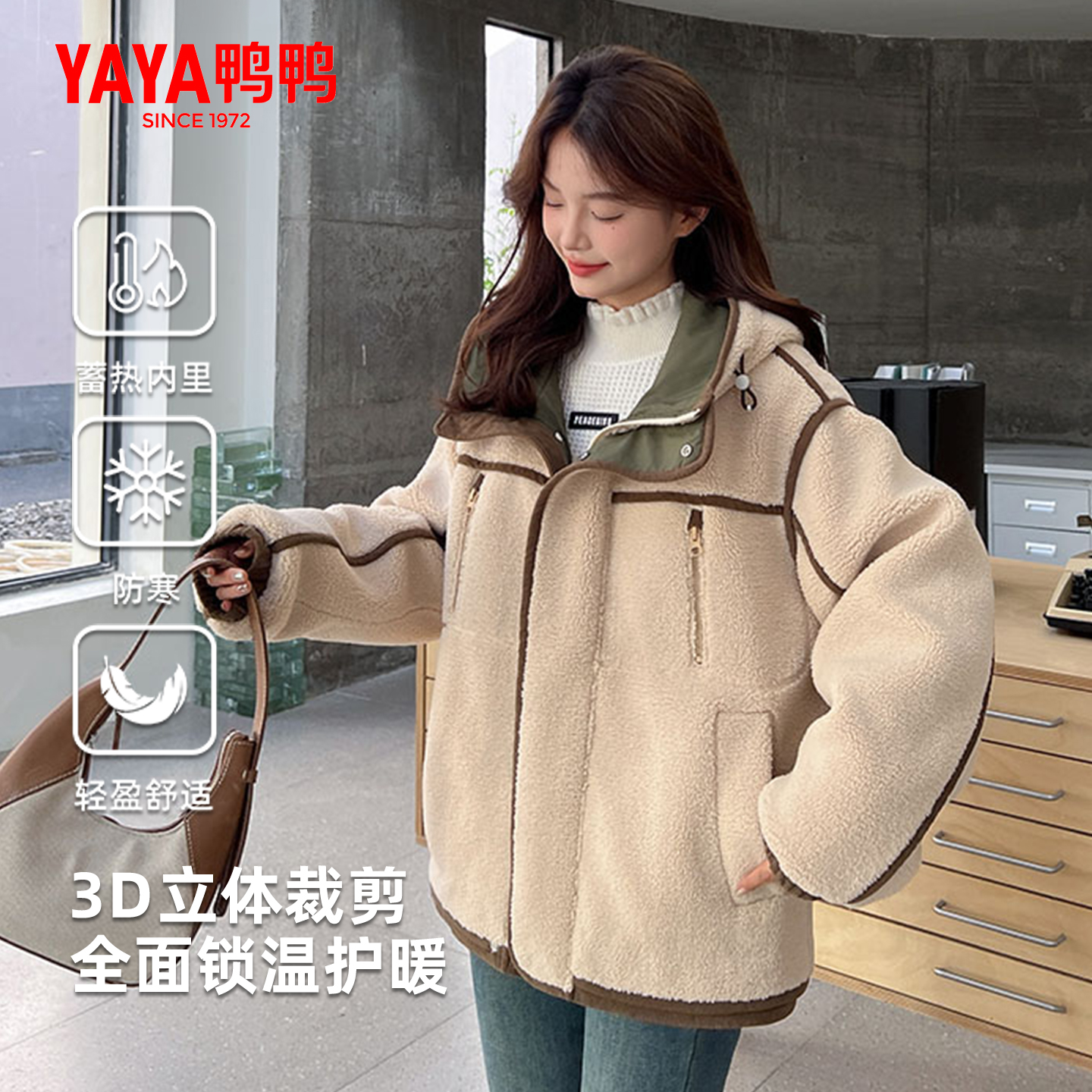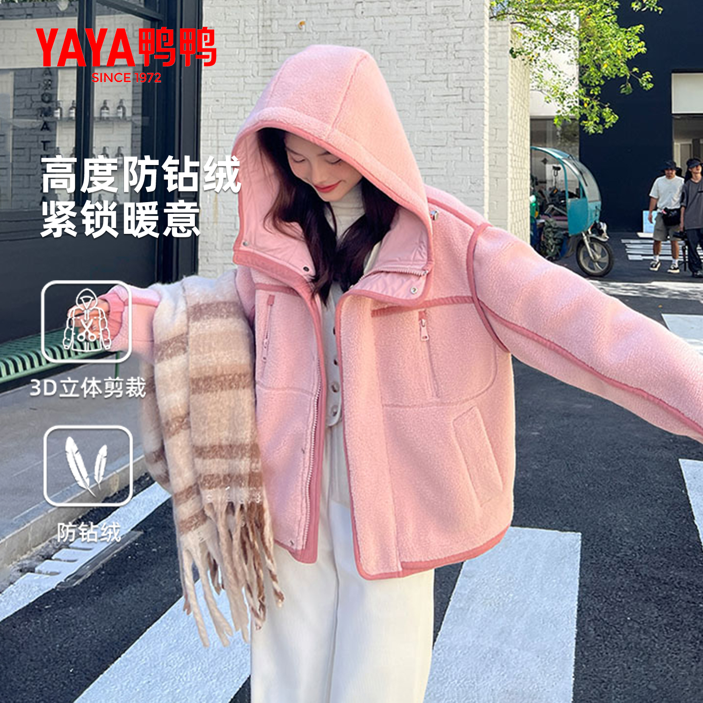鸭鸭羊羔绒外套羽绒服女短款小个子冬季2025新款时尚百搭轻薄高端