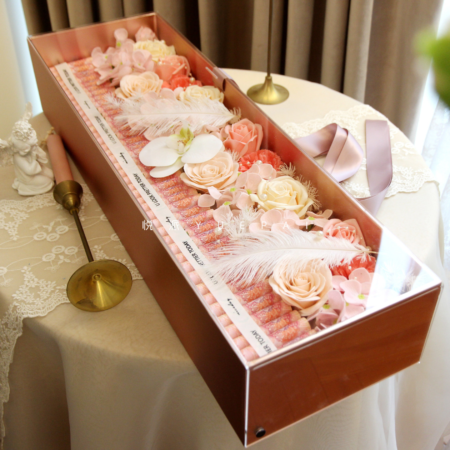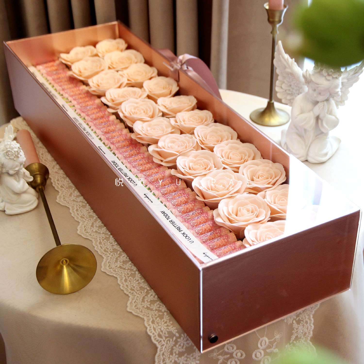 亚克力透明翻盖礼物盒DIY肥羊卷鲜花礼品盒仪式感钱花包装盒空盒