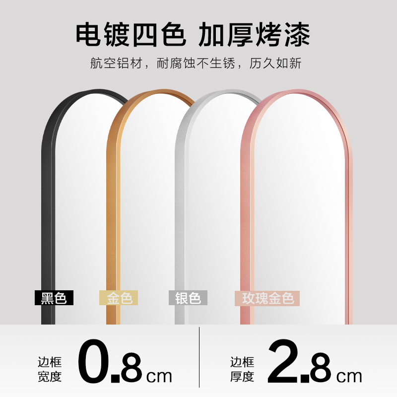 伯仑 拱形全身镜法式奶油风落地镜家用穿衣镜壁挂服装店试衣镜子