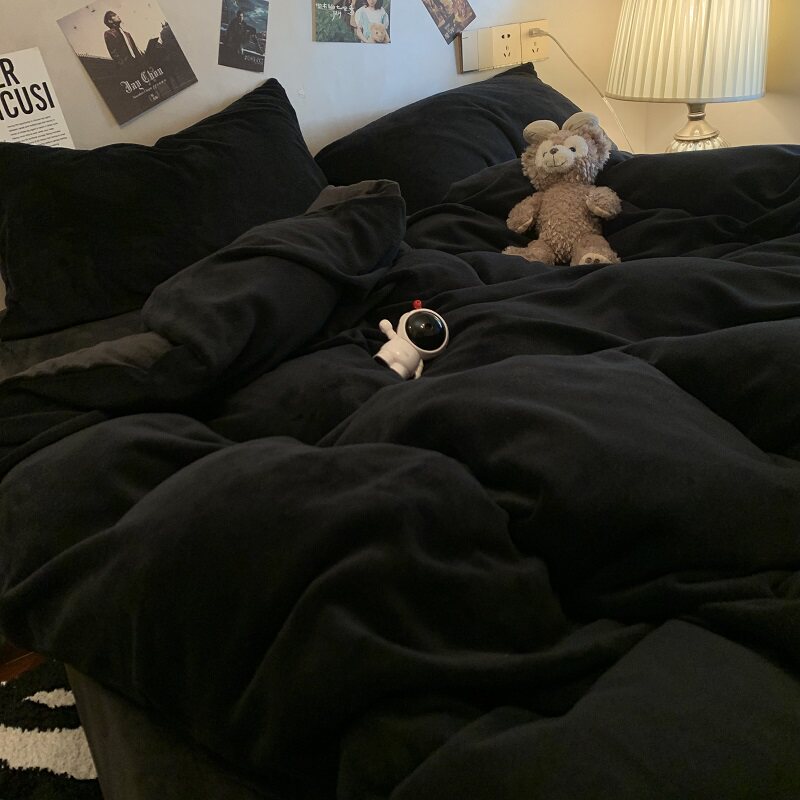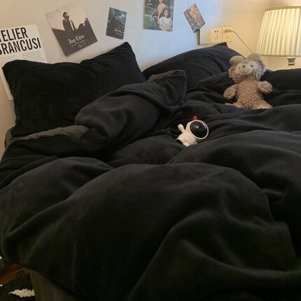 简约纯色系加厚牛奶绒四件套冬季保暖珊瑚绒床单被套床笠款三件套