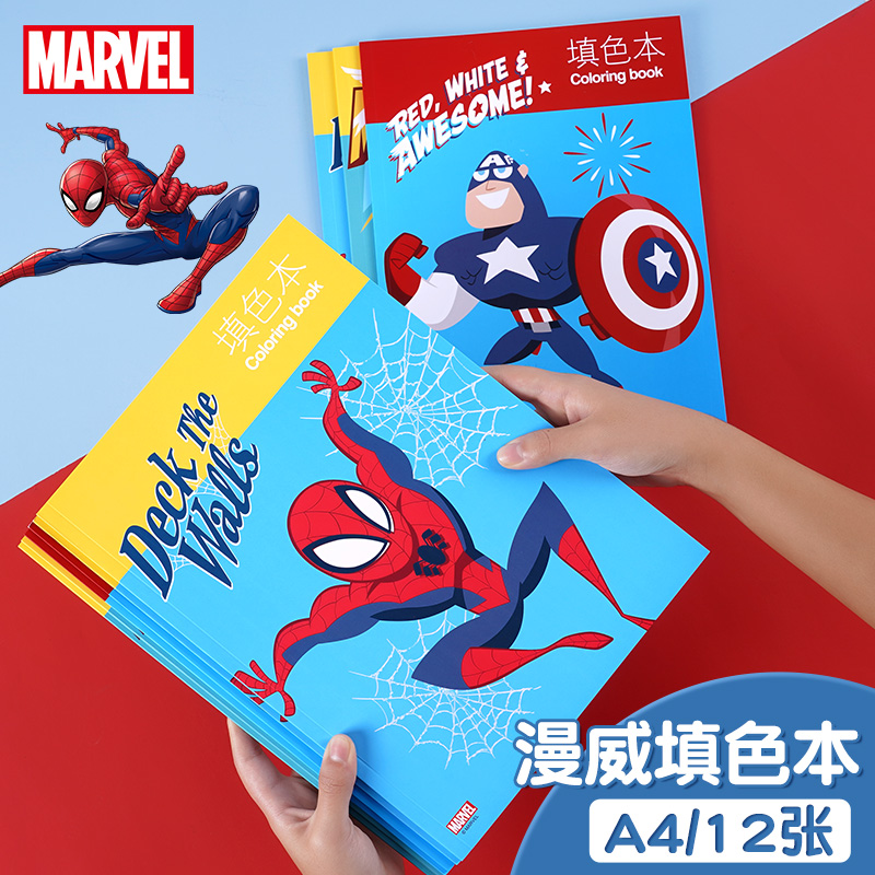 迪士尼蜘蛛侠填色本A4儿童图画本幼儿趣味涂色本美术画画本卡通画