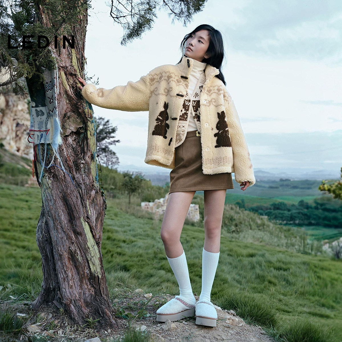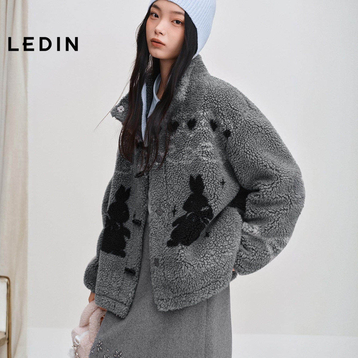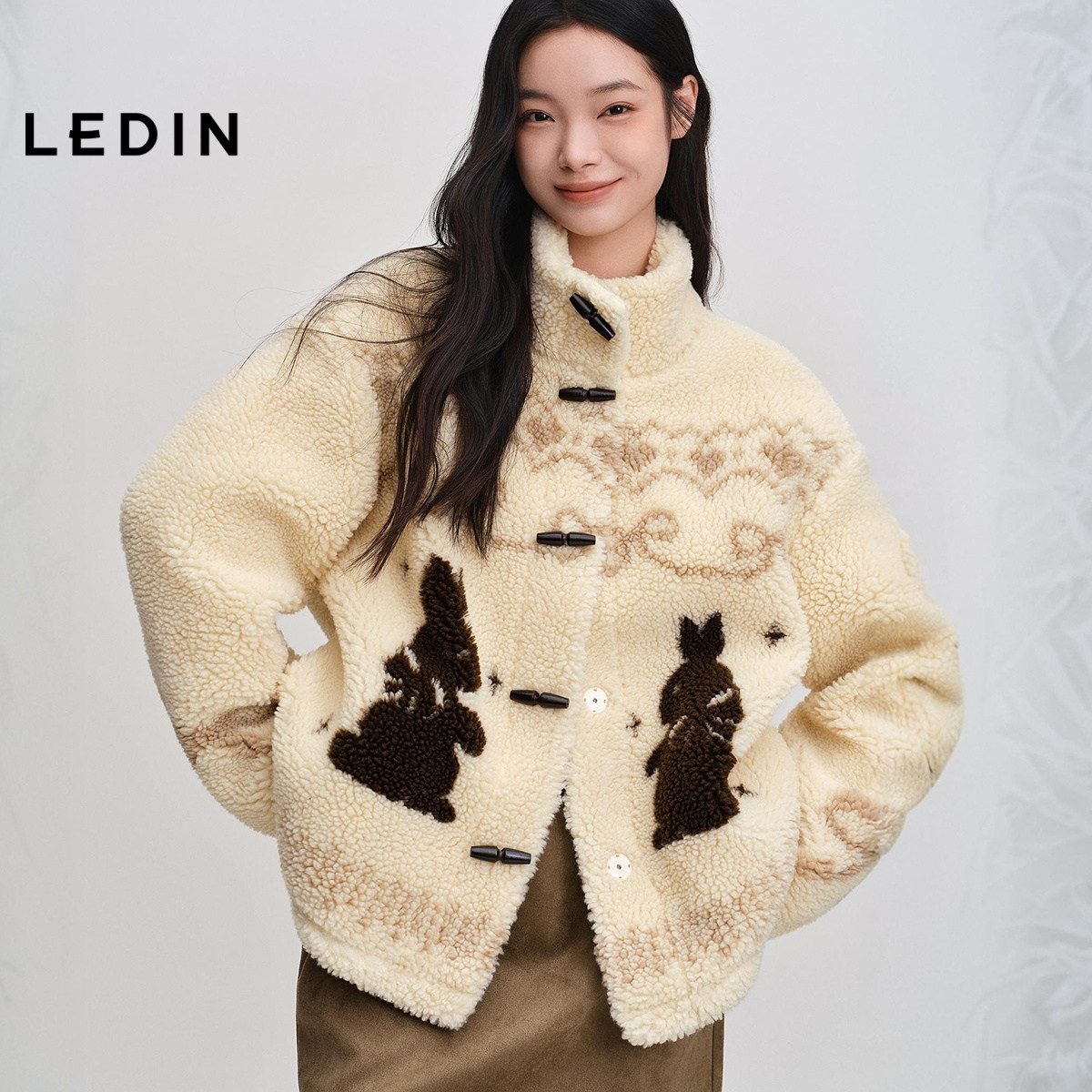 【韩系暖绒】乐町图案可爱毛毛外套冬新款牛角扣仿羊羔毛立领外套