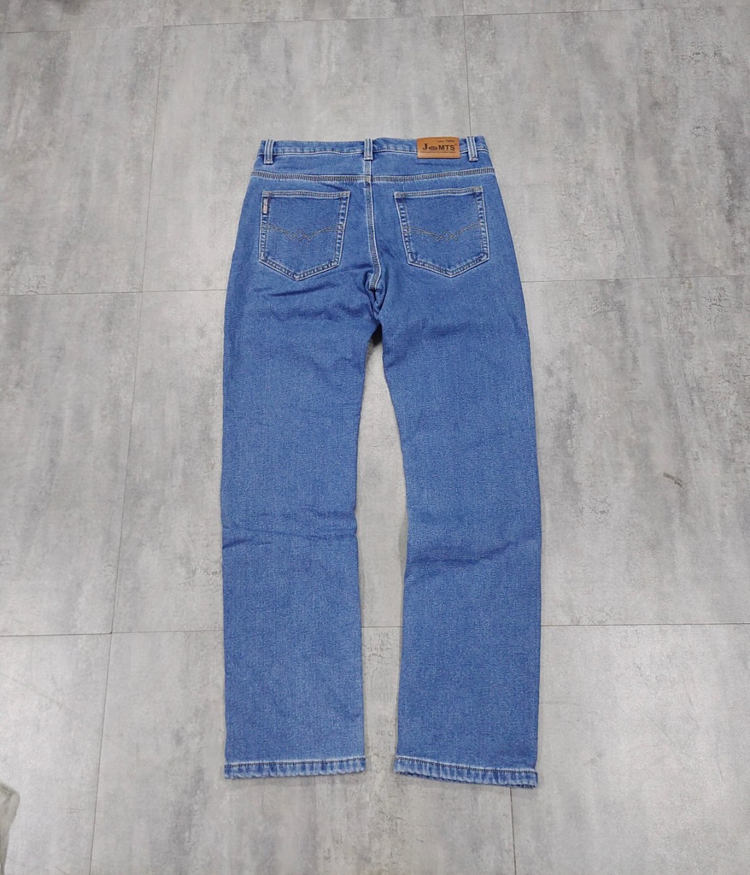 简约美式中年复古外贸微微弹牛仔裤男中腰水洗直筒加绒加厚长裤