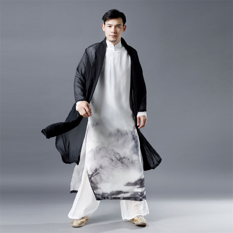 秋汉服开衫飘逸仙气古风演出服男女装外套印花薄雪纺纱中国风披风