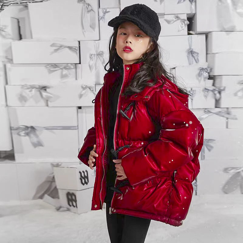 女童羽绒服2024新款白鸭绒儿童网红洋气亮面免洗冬季红色加厚外套