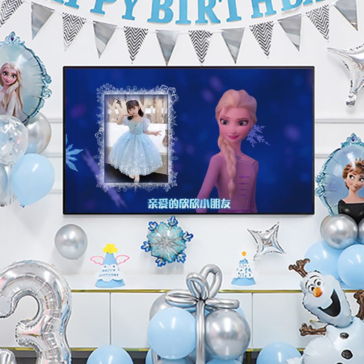 福女孩励加鼓庆电视生日艾莎公主生定制投屏冰雪奇缘祝视频制作油