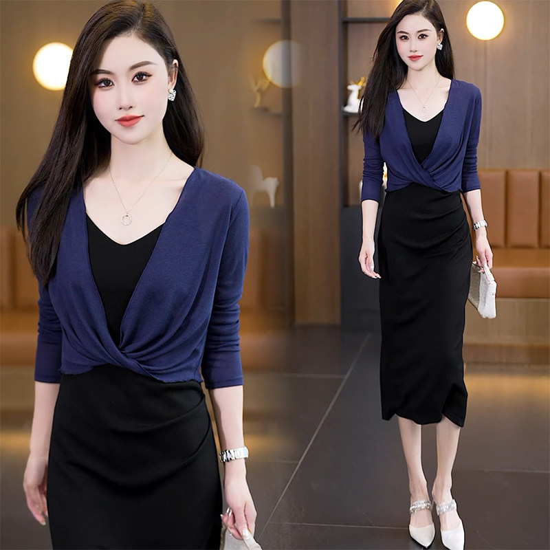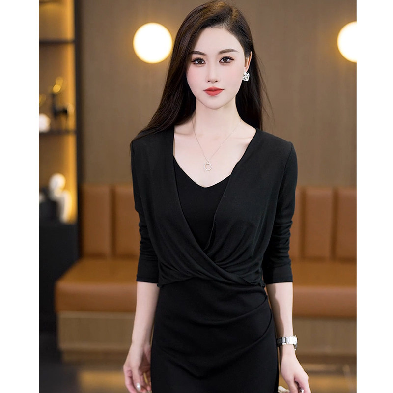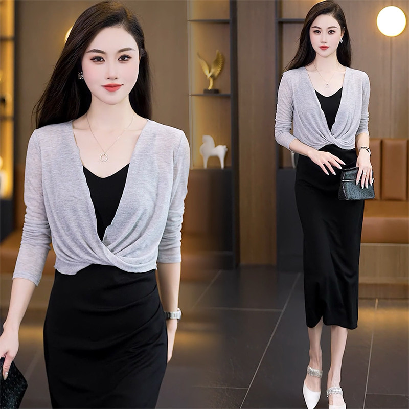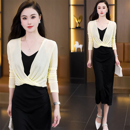 夏季小披肩配裙子的薄款坎肩短外套网纱黑色长袖针织扭结女士外搭