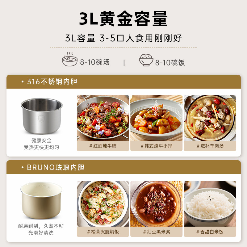 BRUNO电压力锅家用3L小型电饭锅