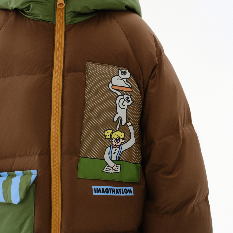 马拉丁童装儿童羽绒服24冬装新款男女小童印花轻暖舒适中长羽绒服